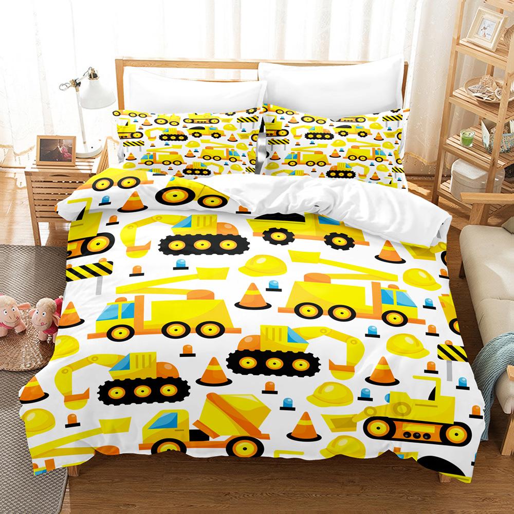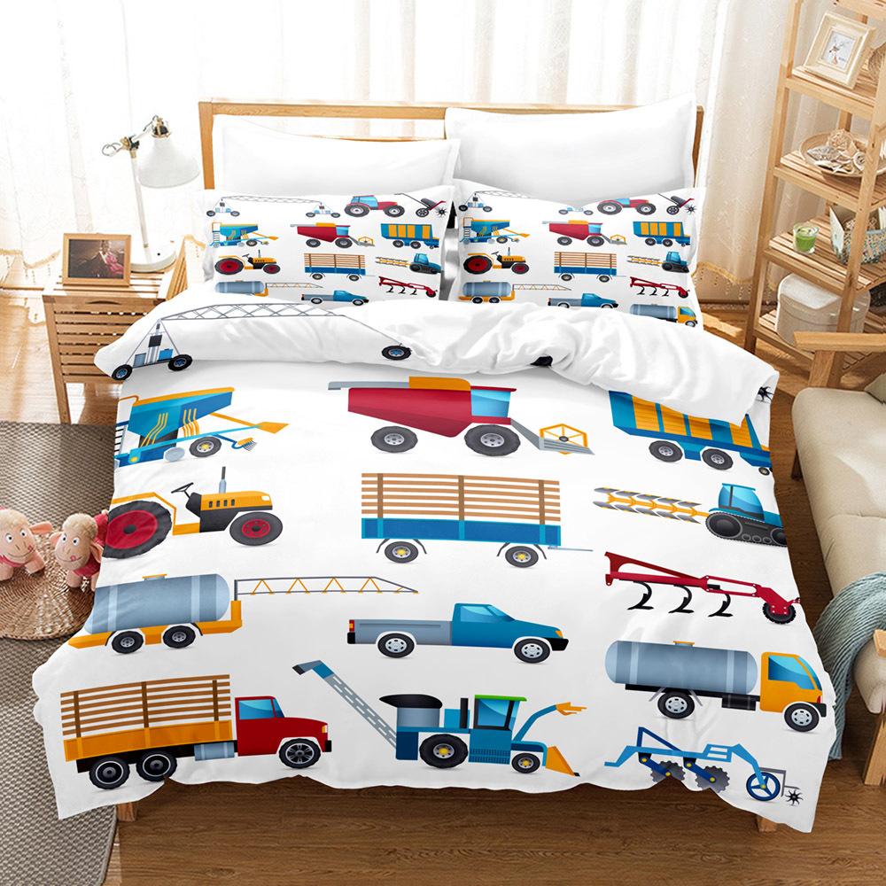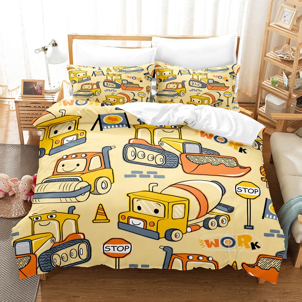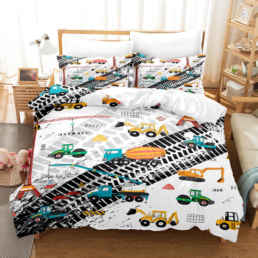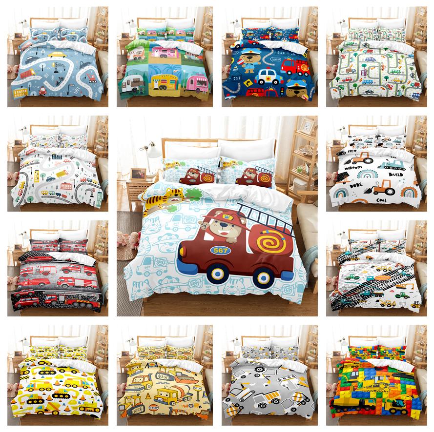 Комплект постельного белья с 3D-треком, мультяшный инженерный автомобиль, пуховый пододеяльник с принтом, 2/3 шт. DE135 * 200, полноразмерное украшение для детской комнаты