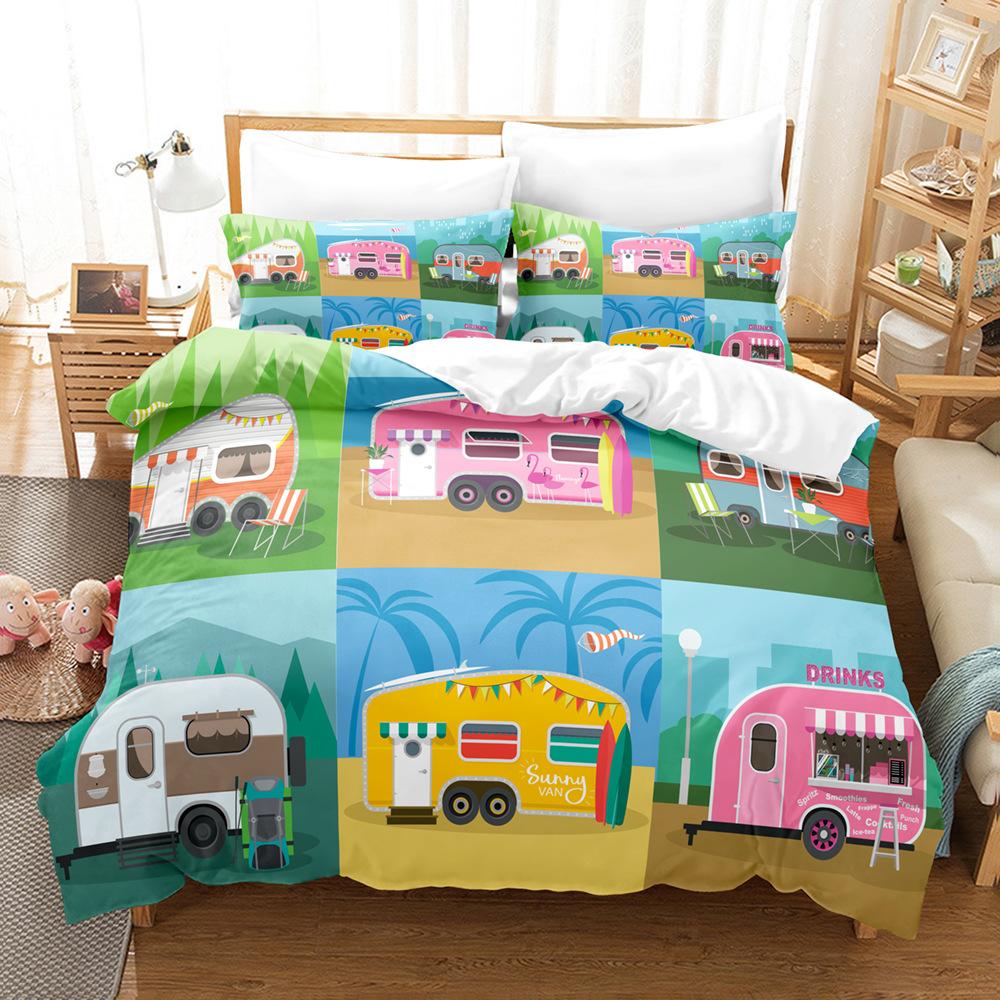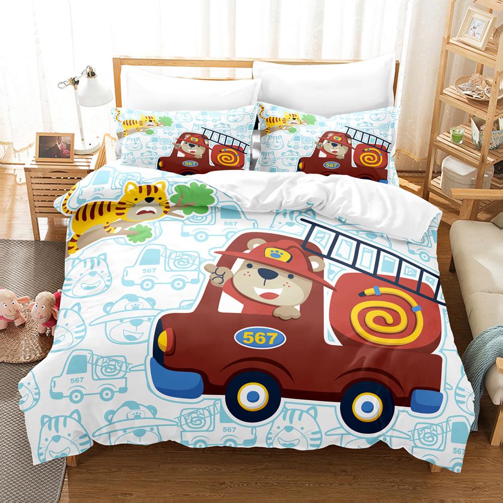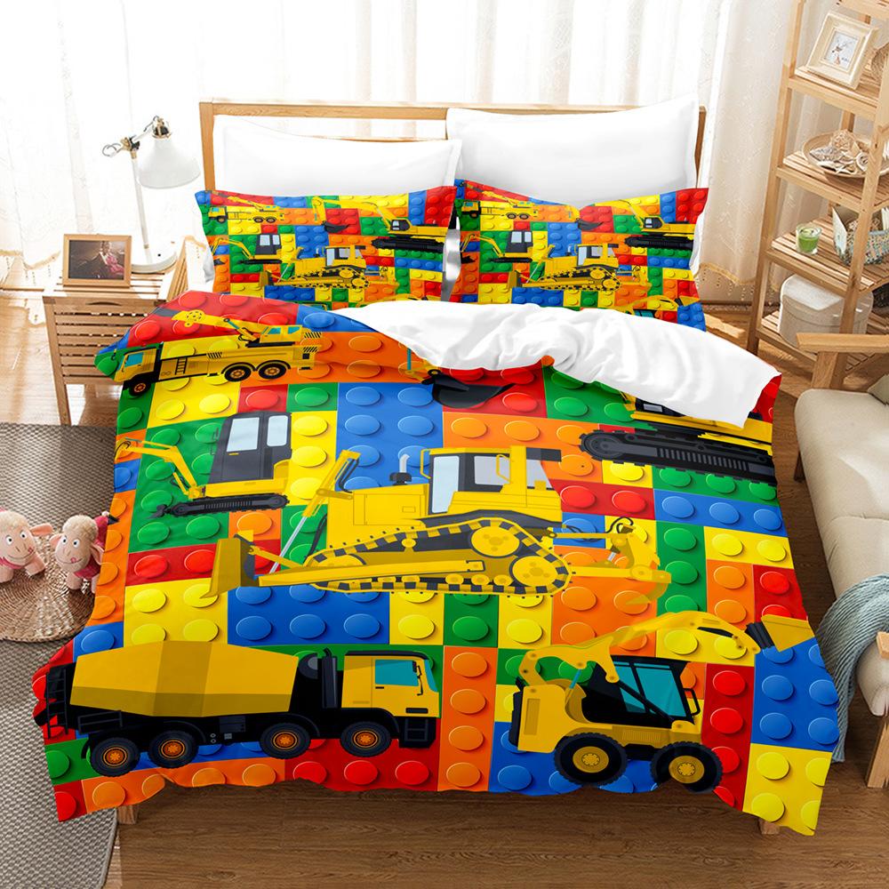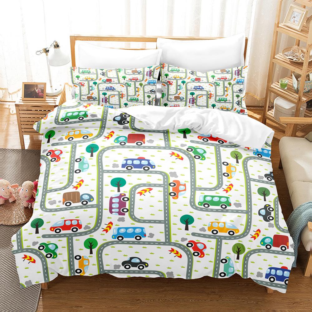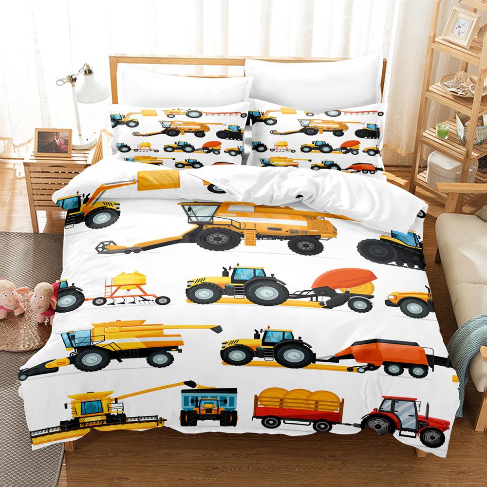 Комплект постельного белья с 3D-треком, мультяшный инженерный автомобиль, пуховый пододеяльник с принтом, 2/3 шт. DE135 * 200, полноразмерное украшение для детской комнаты