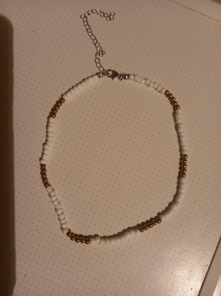 Пришли мои бусы📿 Цвет прислали белый с золотом, мне вполне понравился, смотрится нежно и мило💖 Бусы довольно короткие, но сзади есть цепочка регулирующая длину, так что пару см прибавить можно. Выиграла за 1 рубль.