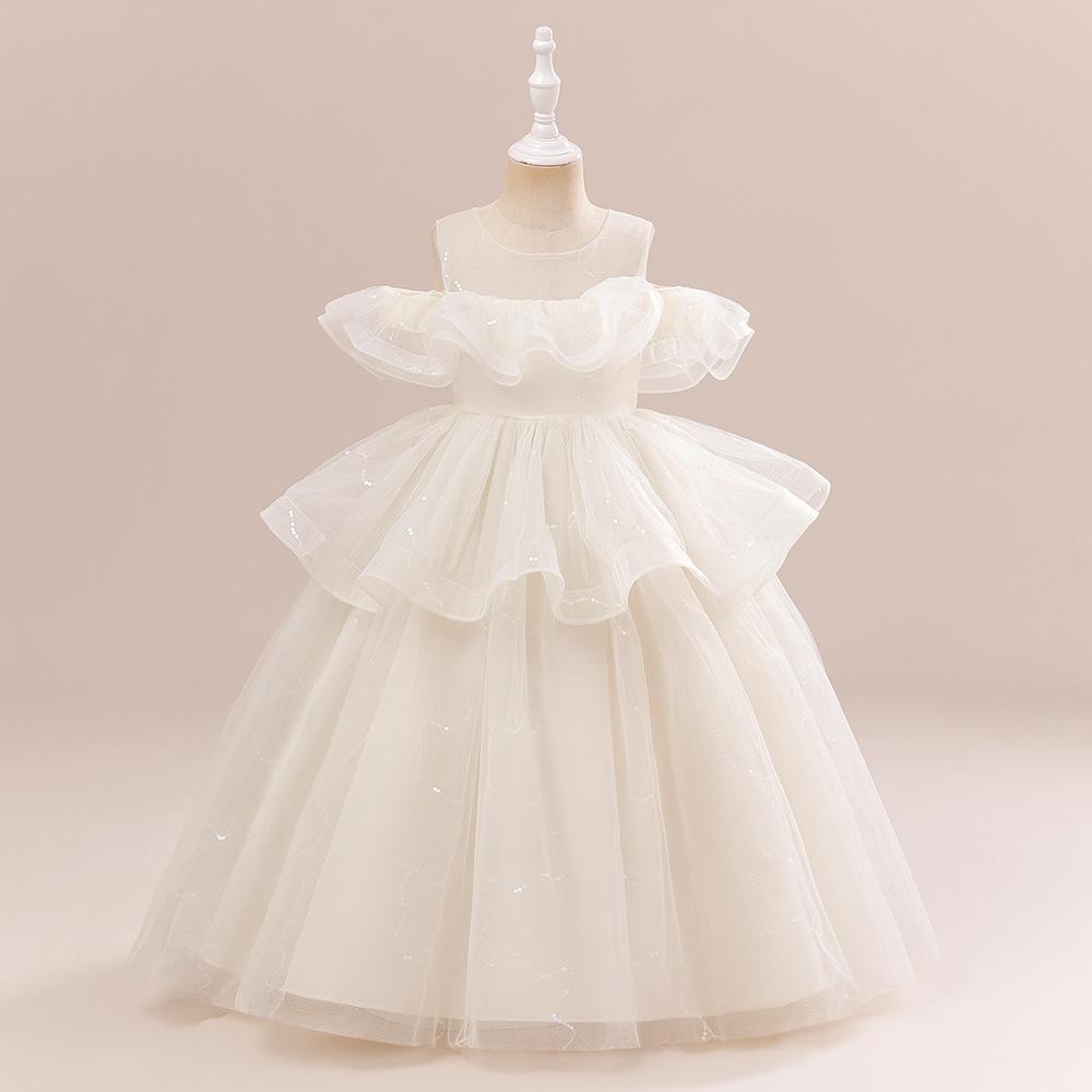 2023 Тюлевое платье принцессы с открытыми плечами для девочек с рюшами для свадебной вечеринки, пышное танцевальное вечернее бальное платье для детей 2–13 лет
