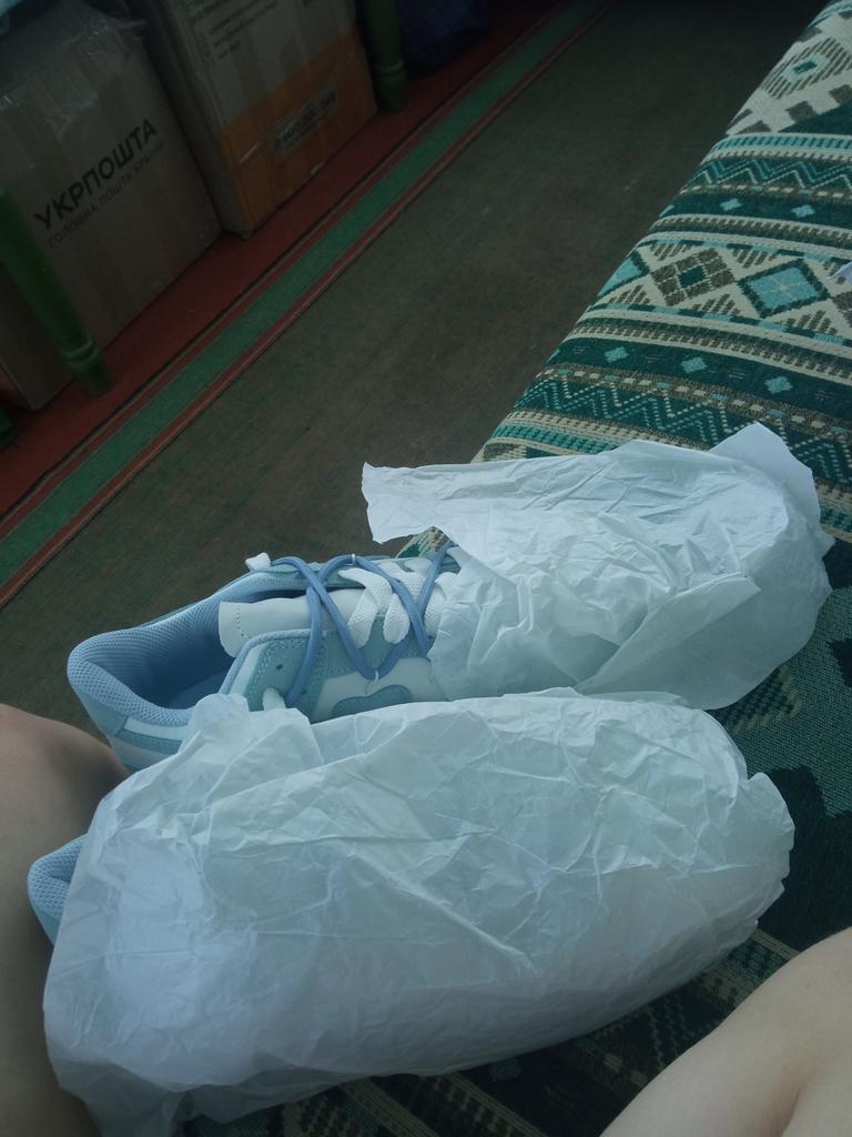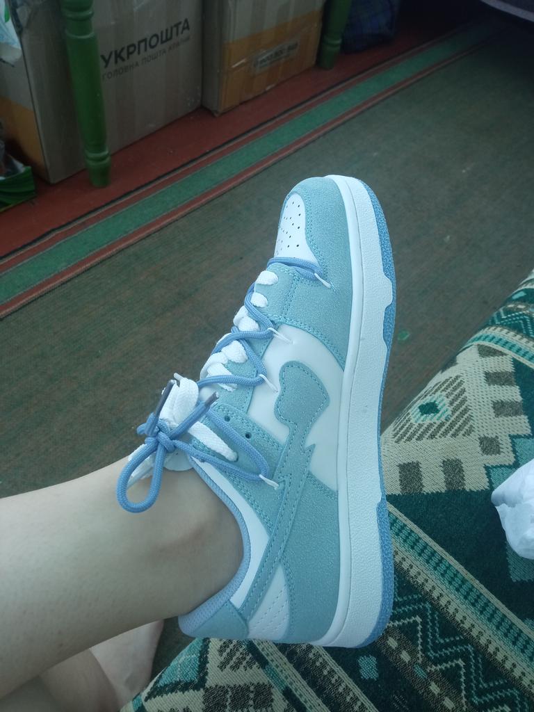 Получила кроссовки, убедилась что обувь надо покупать только с примеркой. Из плюсов: резиновая подошва прошитая, зелёные вставки хорошо смотрятся. Из минусов: сильно большемерят, перемудрил со шнурками, былые вставки смотрятся бумажными. Да ещё, они широкие на стандартную полноту ноги.