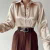 Женские 2022 элегантные атласные однотонные блузки с длинными рукавами, женские шикарные винтажные сине-зеленые повседневные свободные рубашки на пуговицах, топы
