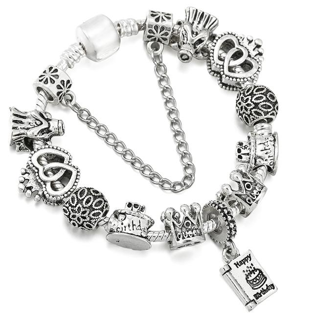Винтажная серебряная Корона, подвеска для торта ко дню рождения, бусины, кулон, цепочка в виде змеи, браслет для женщин и девочек, ювелирные изделия, подарки — купить товар онлайн с бесплатной доставкой по всему миру!