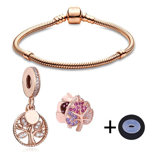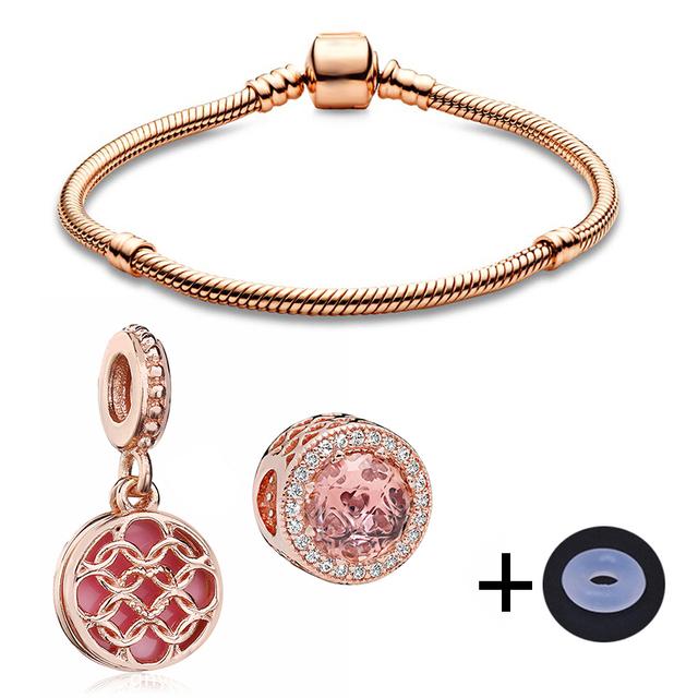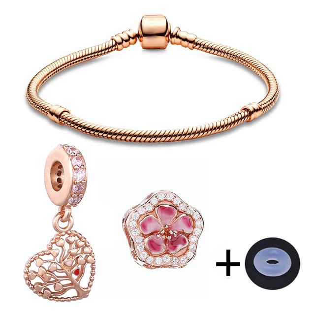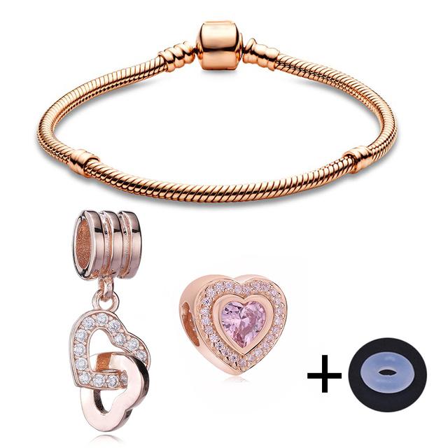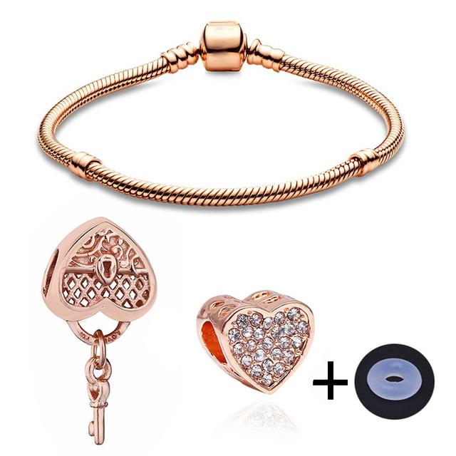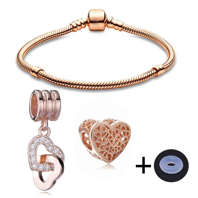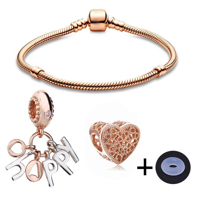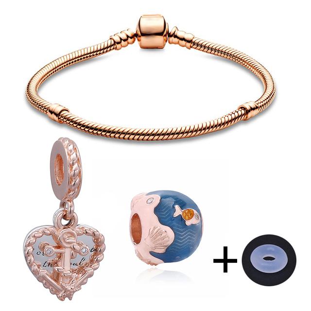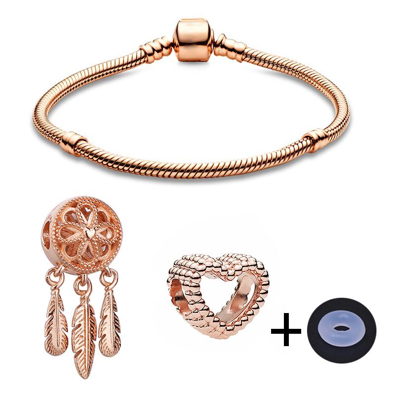 Классические простые браслеты с подвесками из розового золота, перо, сердце, бусины, браслеты для женщин, ювелирные изделия