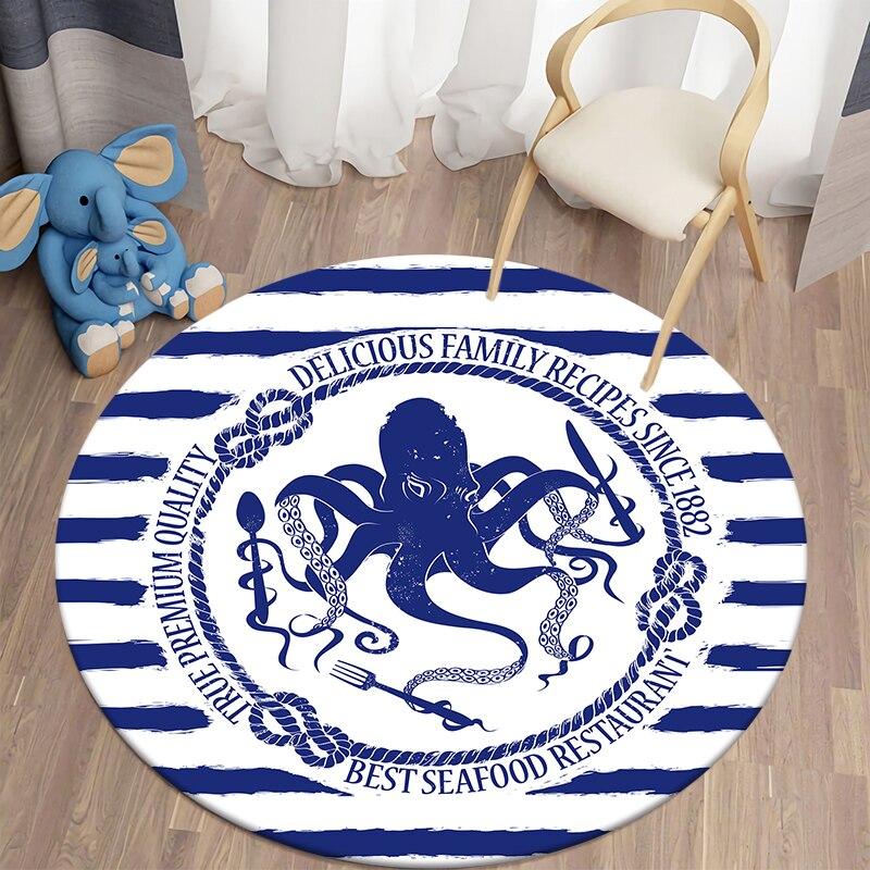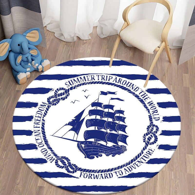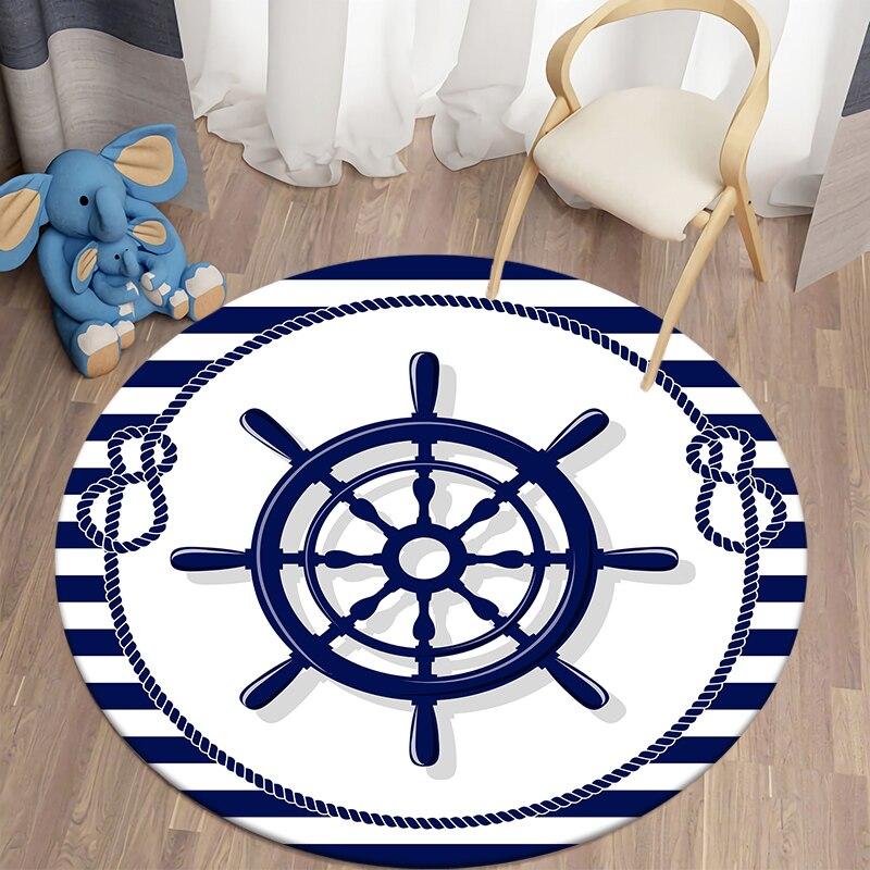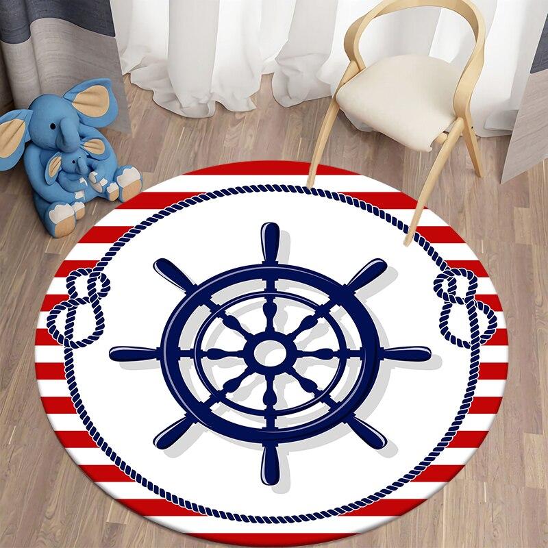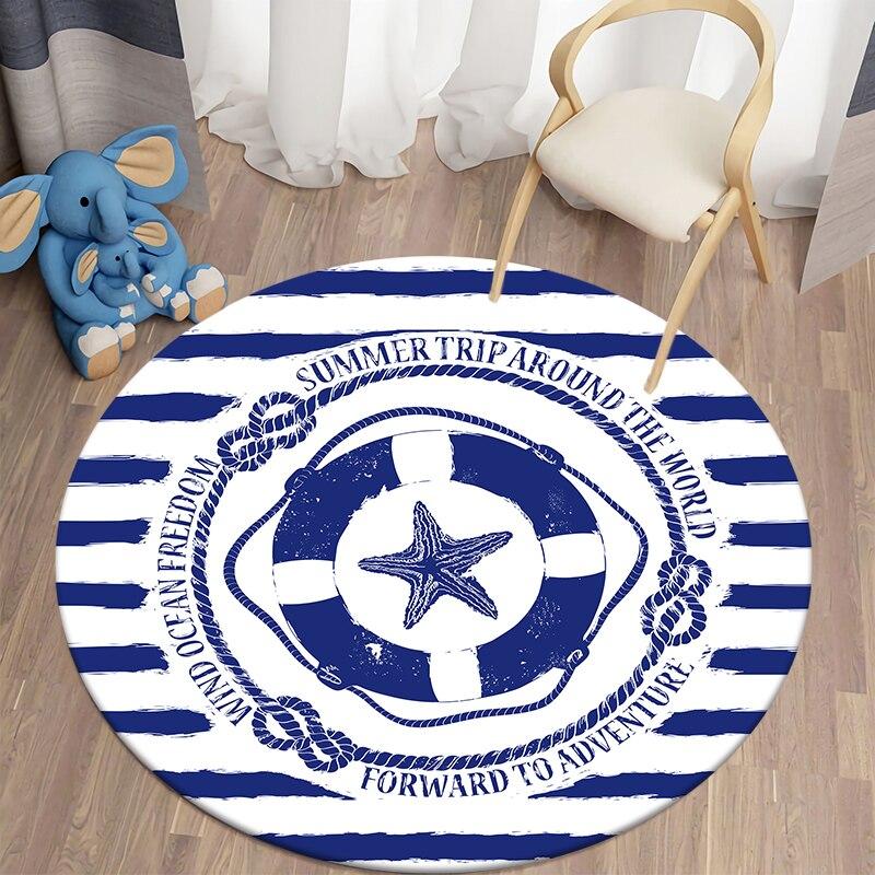 Круглый ковер в морском стиле для гостиной, спальни, детские коврики, мягкий кухонный коврик, нескользящий фланелевый ковер, напольный коврик для пикника, кемпинга