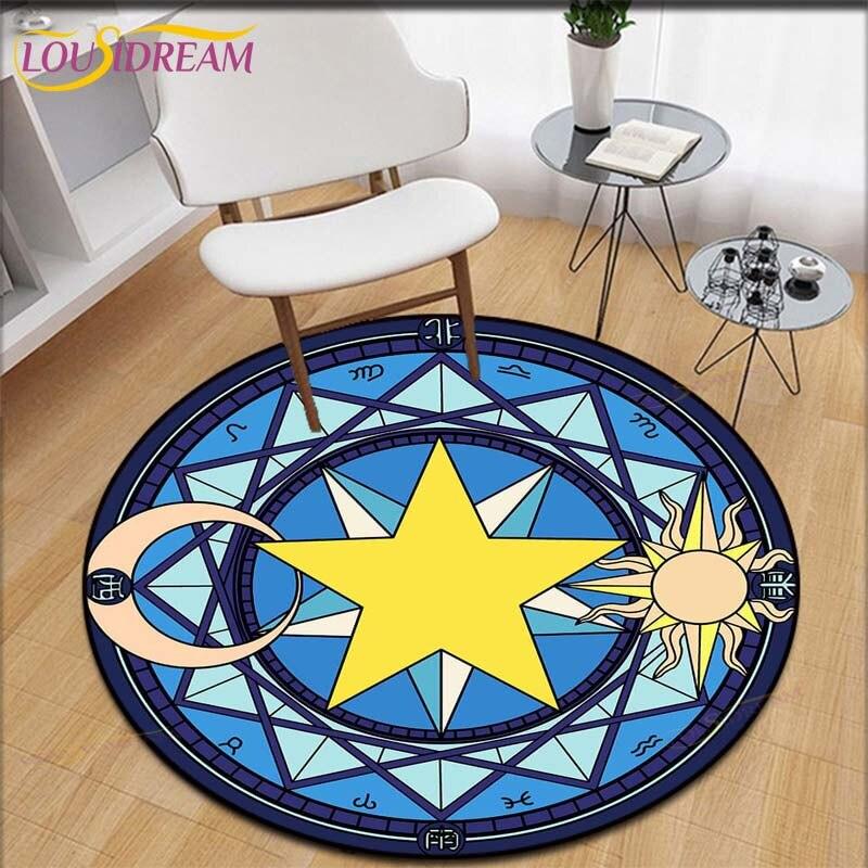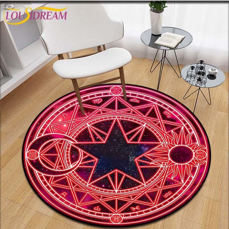 Круглый ковер с рисунком Сакуры Magic Captor Card для спальни, гостиной, напольный коврик, большой декоративный нескользящий коврик