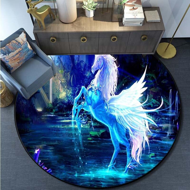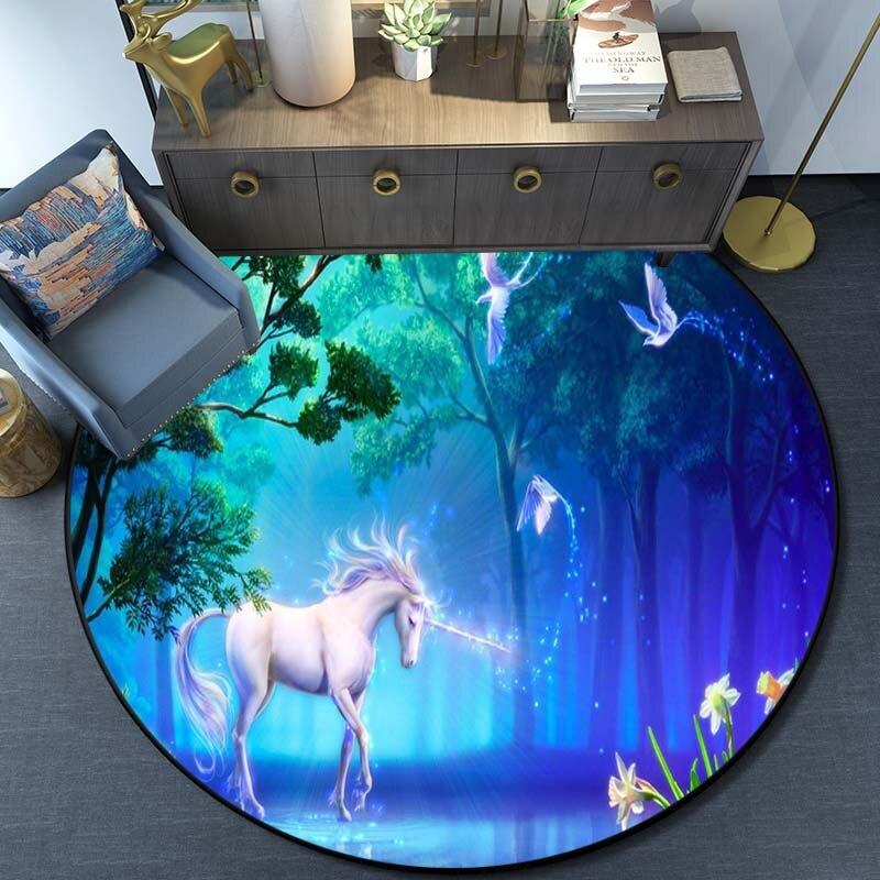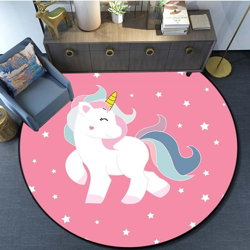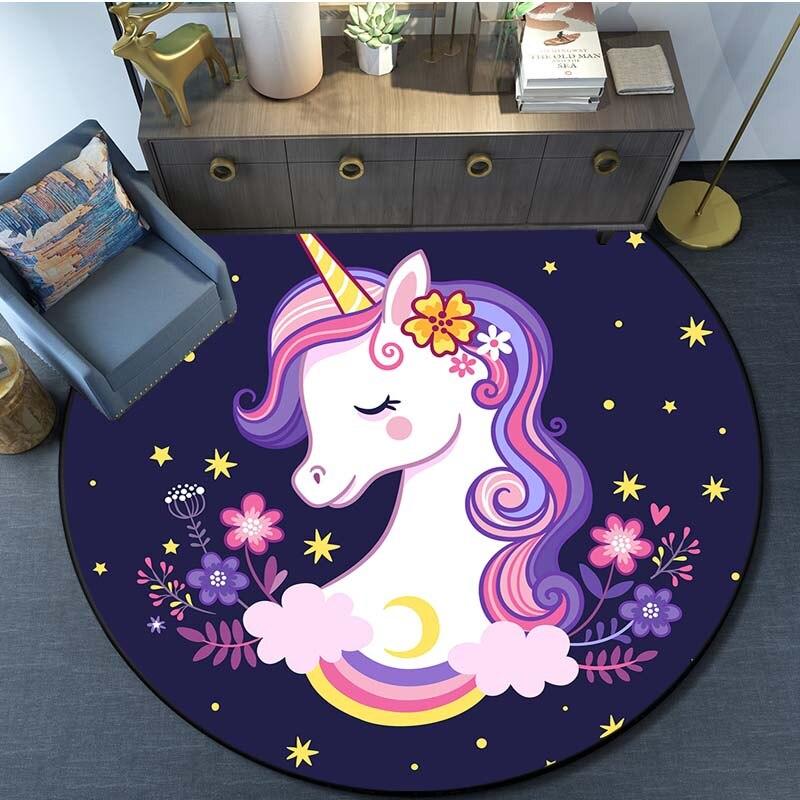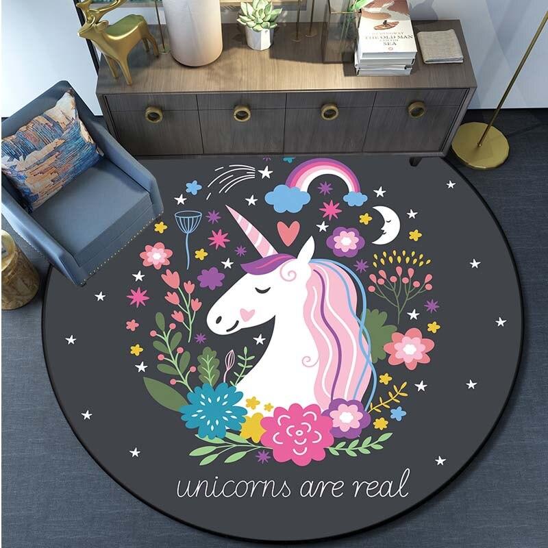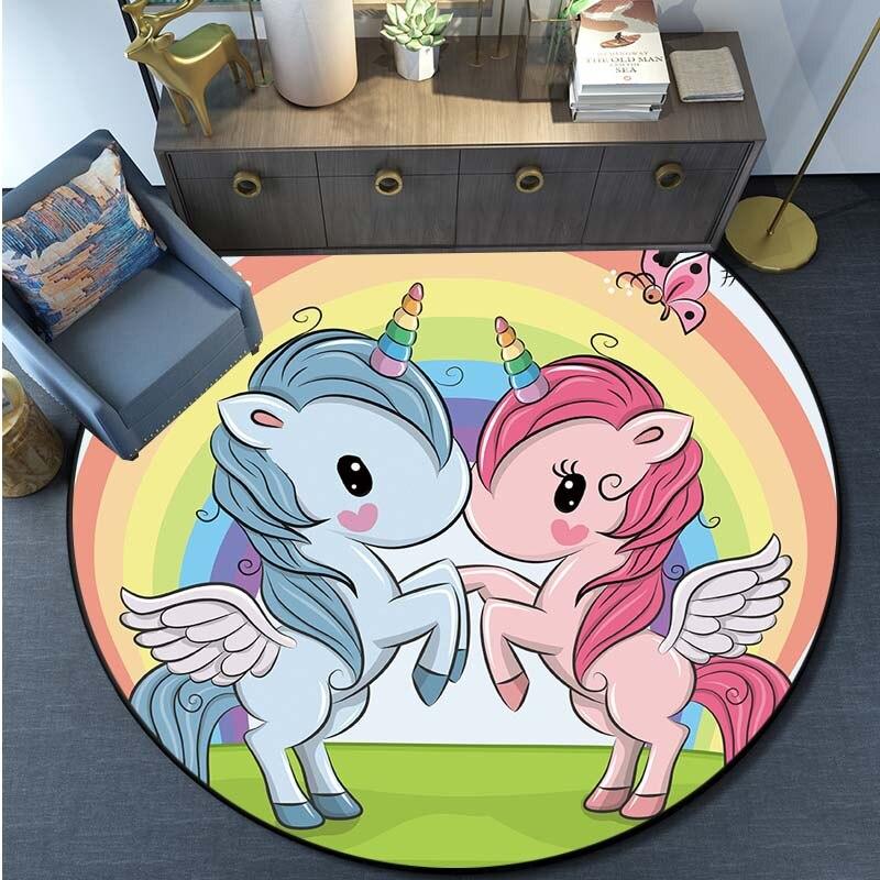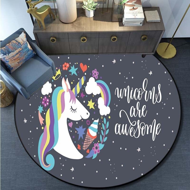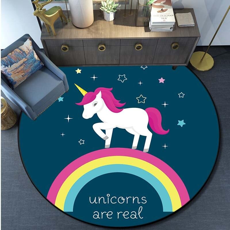Круглый ковер с принтом единорога из мультфильма, ковер для кухни, спальни, ковер для детской комнаты, детский игровой коврик, коврик для ванной комнаты
