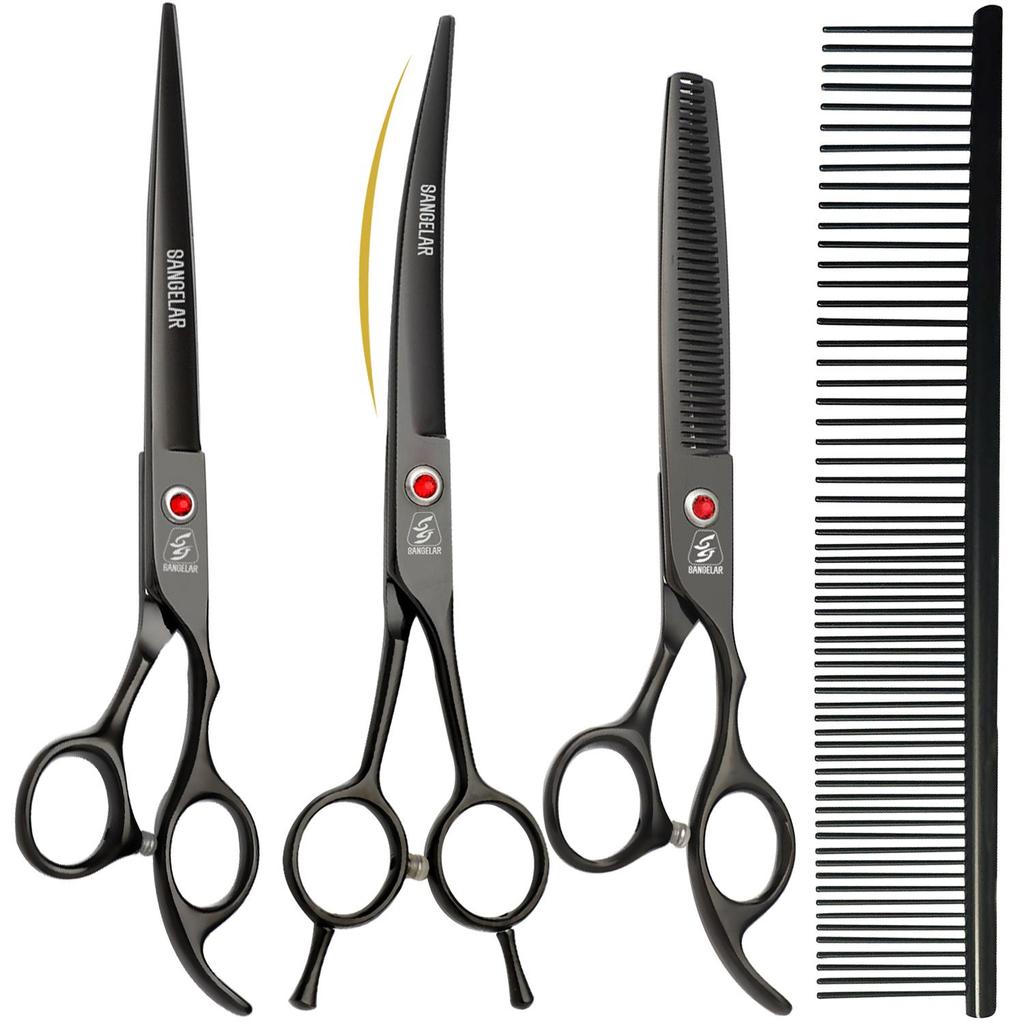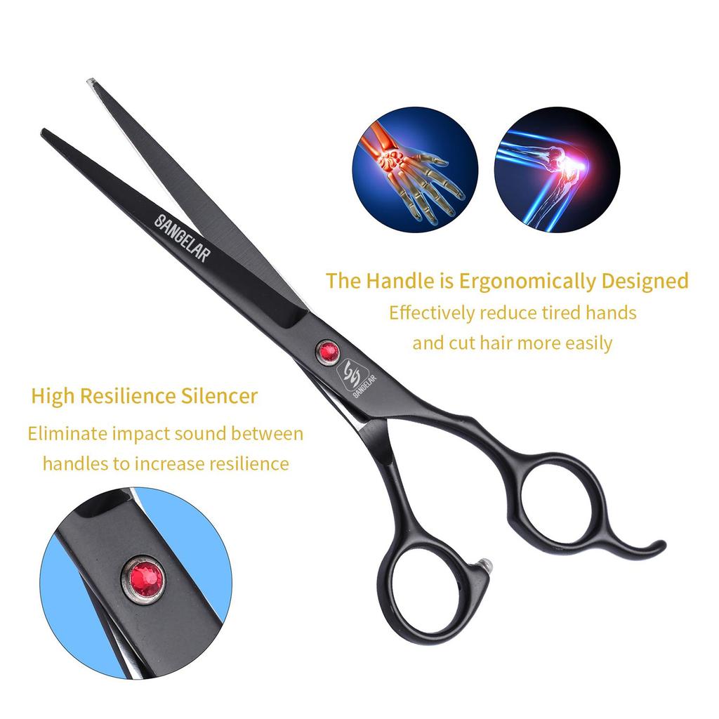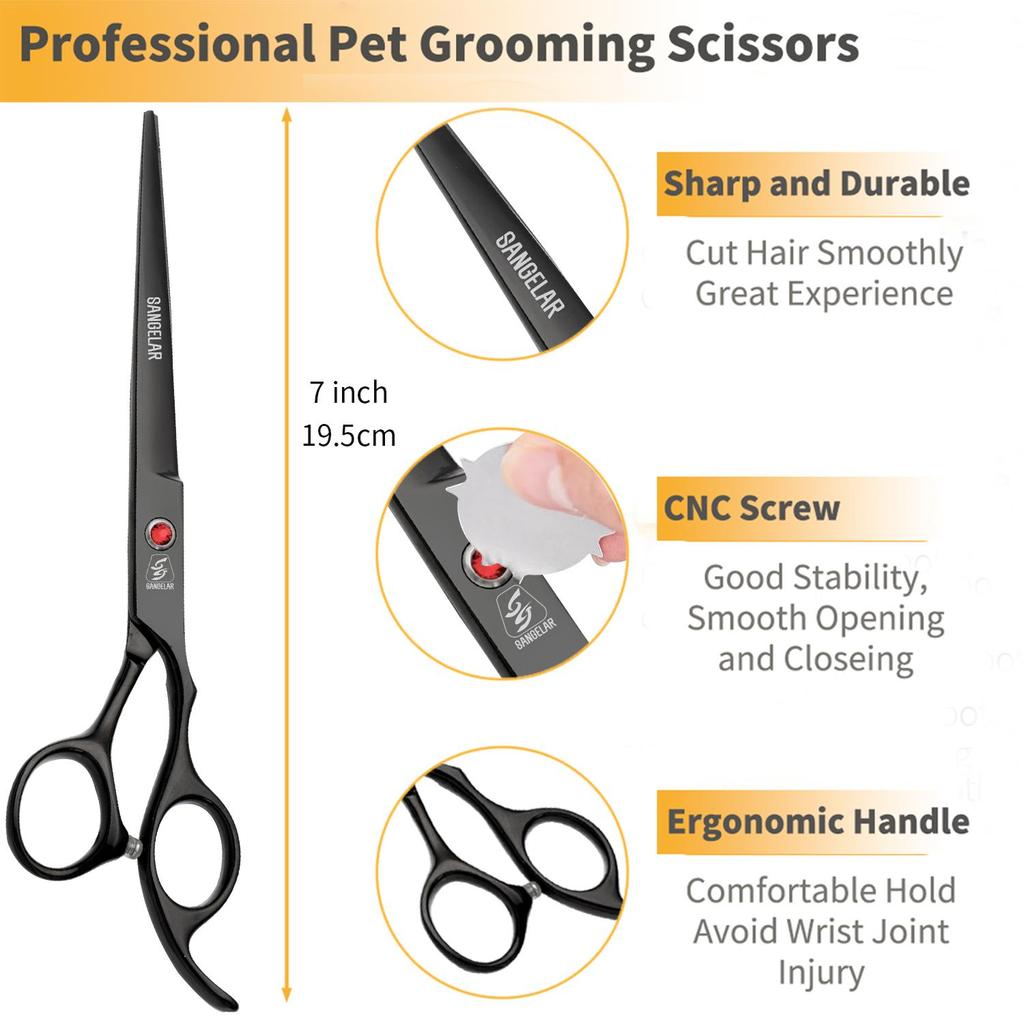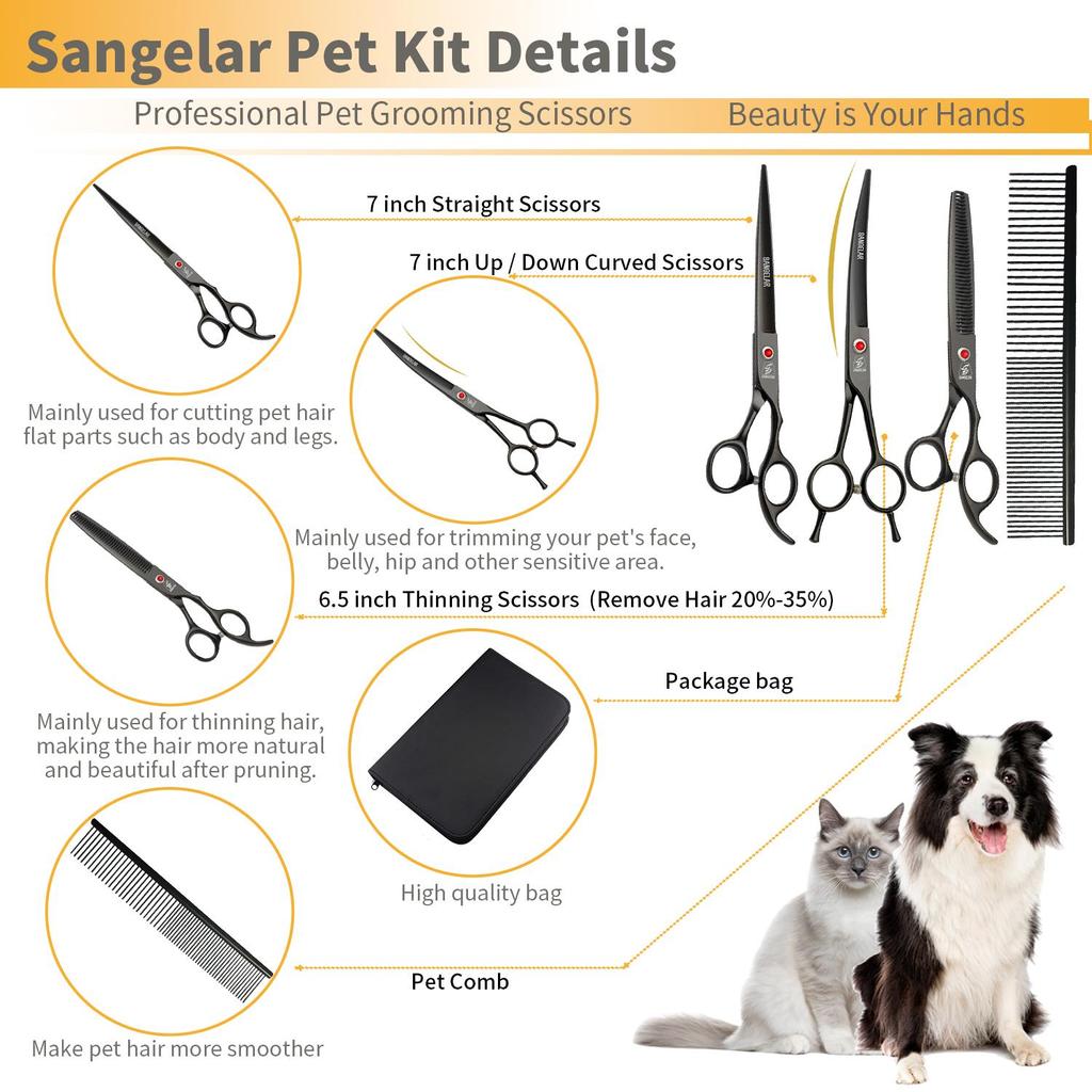 SANGELAR 7-дюймовые ножницы для ухода за домашними животными, профессиональный грумер для собак, кошек, инструменты для ухода за волосами домашних животных, ножницы для стрижки, режущие ножницы, изогнутые ножницы для истончения