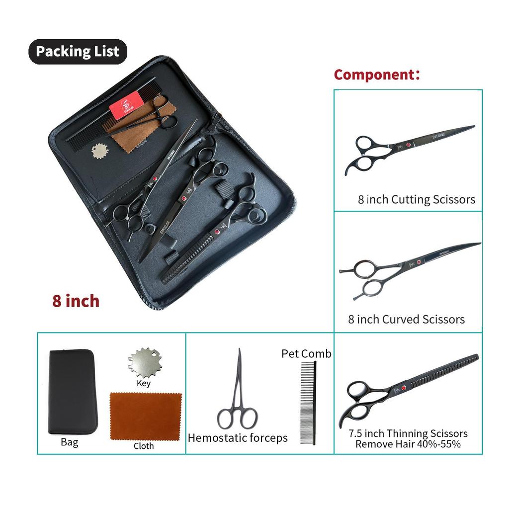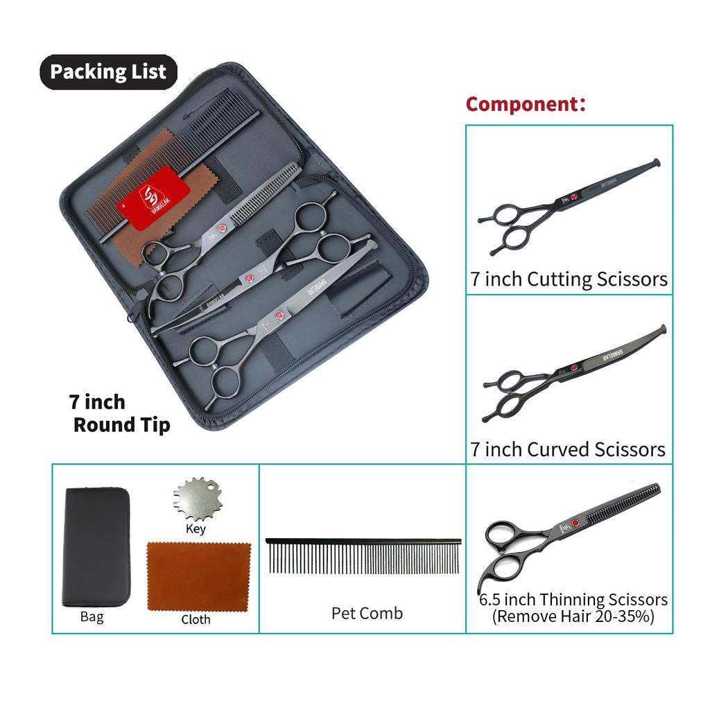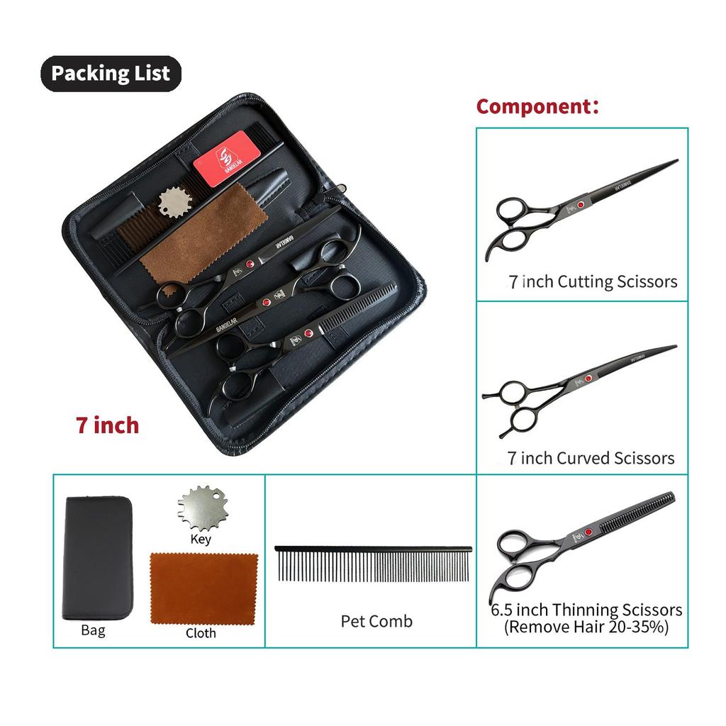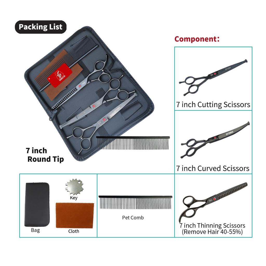 SANGELAR 7-дюймовые ножницы для ухода за домашними животными, профессиональный грумер для собак, кошек, инструменты для ухода за волосами домашних животных, ножницы для стрижки, режущие ножницы, изогнутые ножницы для истончения