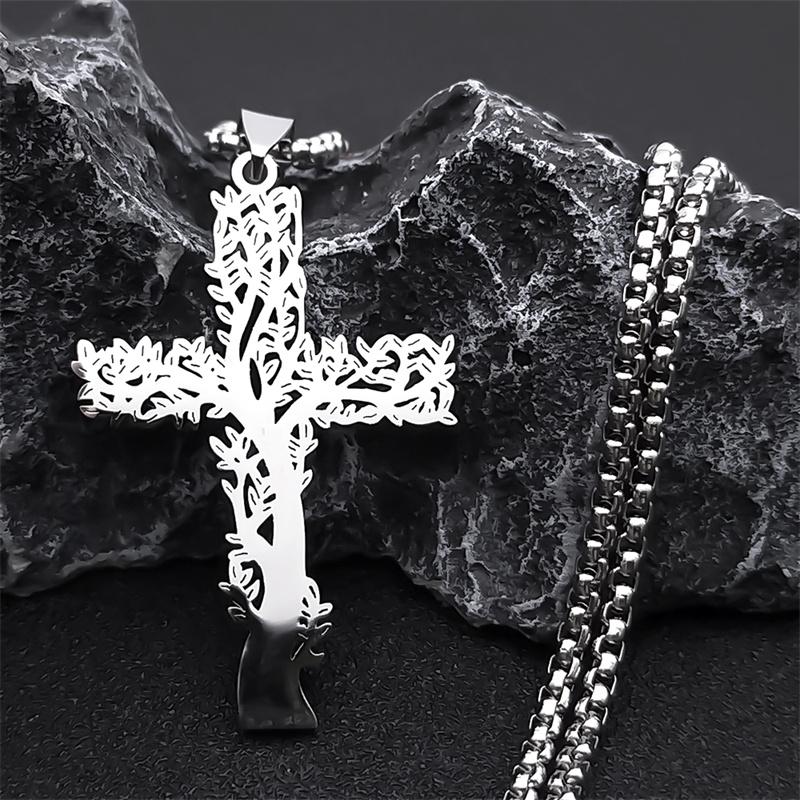 Древо Жизни Крест Кулон Ожерелье Серебряного Цвета Мужчины Женщины Ожерелье Ювелирные Изделия