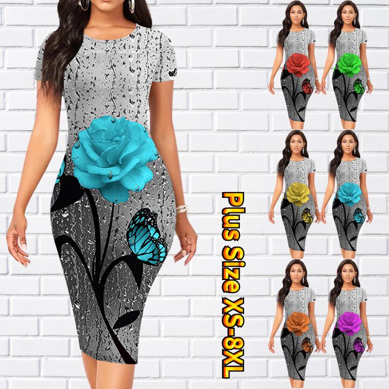 Тонкое платье длиной до колена с коротким рукавом, модное женское платье миди с 3D принтом розы