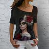 Лето 2023, винтажная женская футболка с изображением черепа, топы с v-образным вырезом, повседневный хлопковый пуловер с короткими рукавами, женская уличная одежда в стиле Харадзюку в стиле панк
