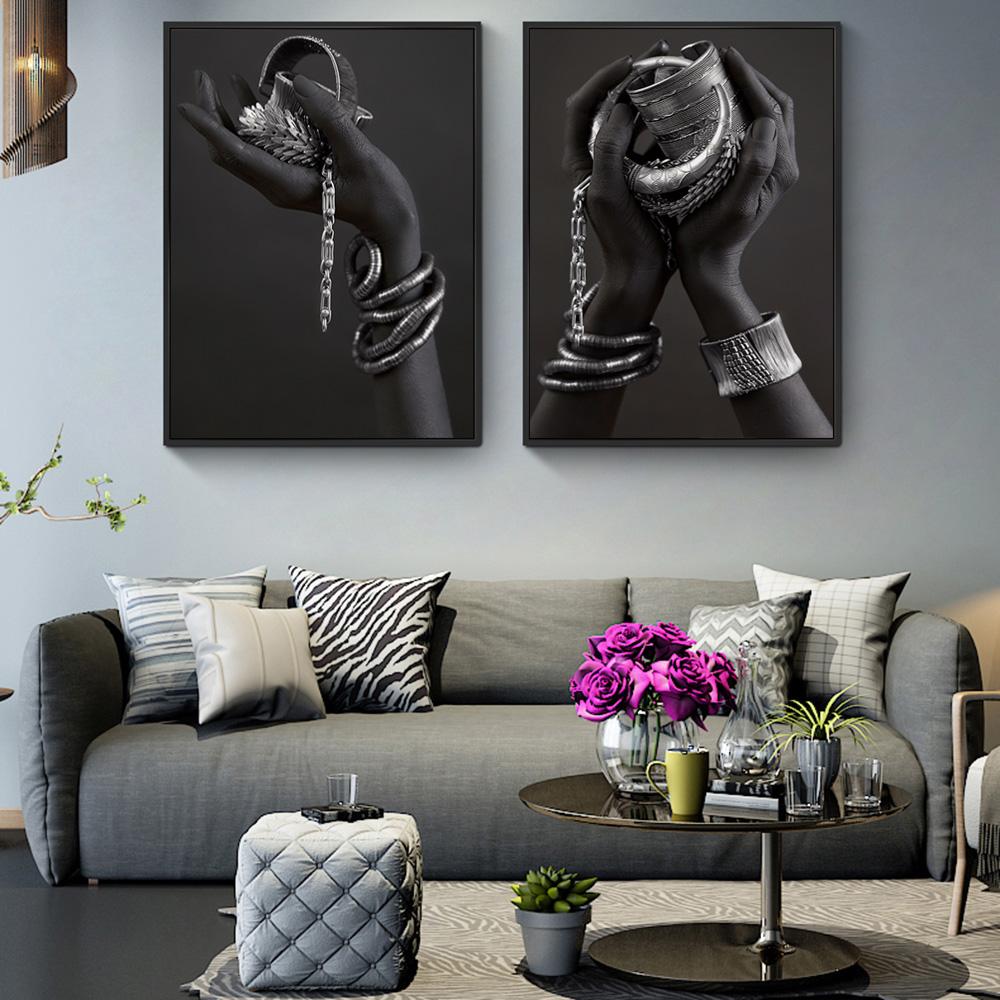 Черные руки держат серебряные украшения, настенные художественные плакаты и принты, современное африканское искусство, холст, картины, декоративные картины на стену дома
