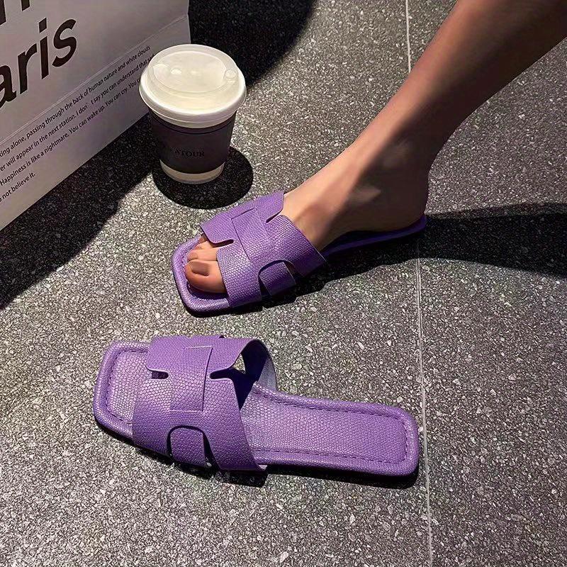 Женские минималистичные сандалии на плоской подошве с квадратным носком, шлепанцы с полые открытым носком, женская обувь