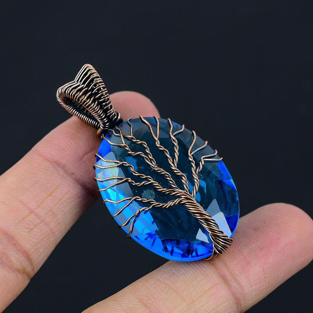 Древо Жизни Иолитовый драгоценный камень Медная проволока Оберточная подвеска ручной работы Ювелирные изделия для нее