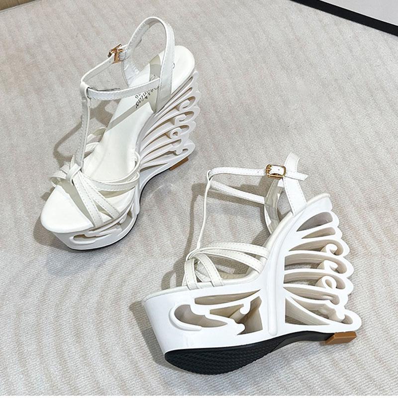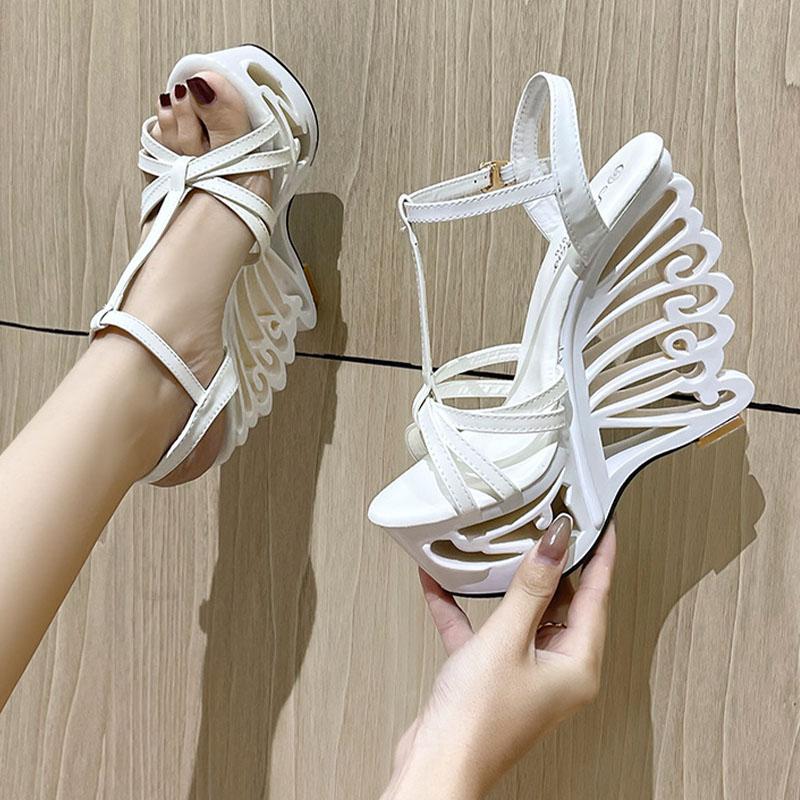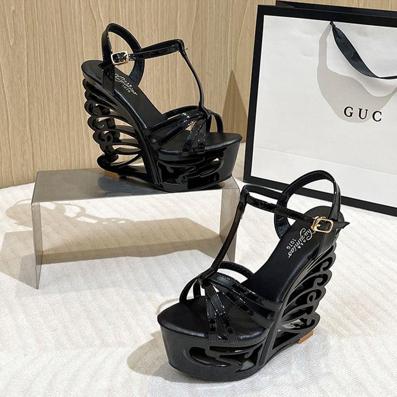 Женская обувь на танкетке, высокий каблук для ночного клуба, тонкий ремешок с резным толстым каблуком, серия 1076, каблук 15 см, платформа 5 см, LFD