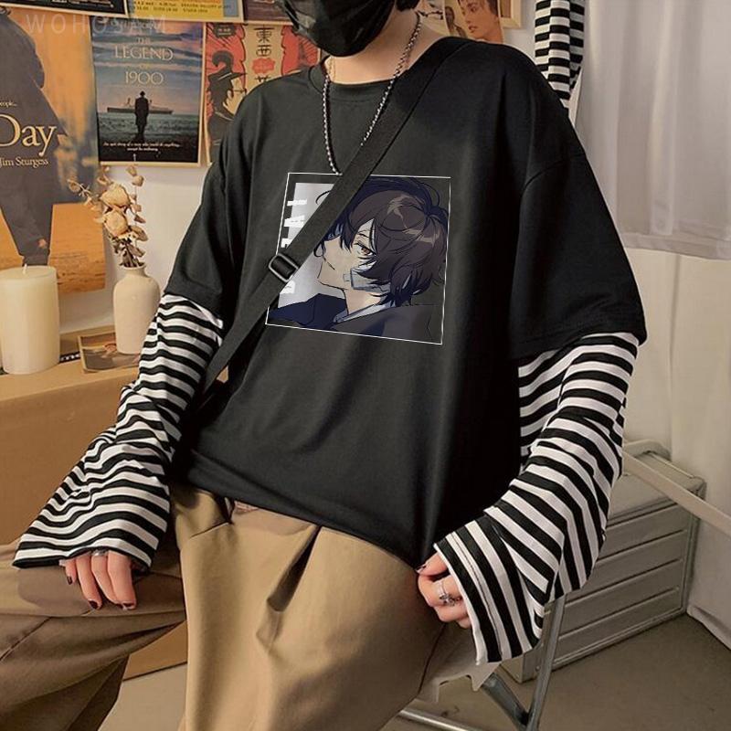 Футболка с аниме Bungou Stray Dogs Harajuku, крутая футболка с мангой Осаму Дадзай, хип-хоп, мужская футболка большого размера с длинными рукавами, летняя футболка в полоску