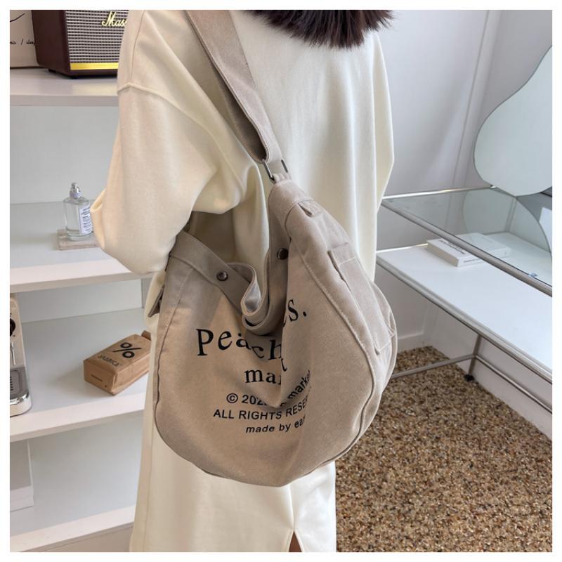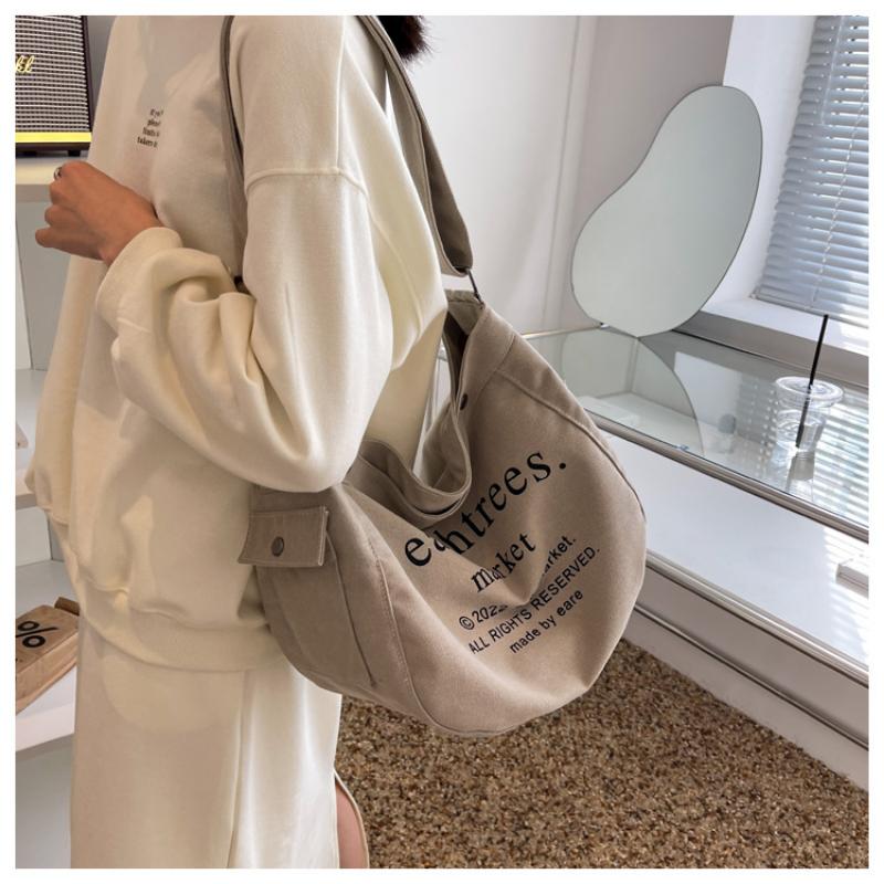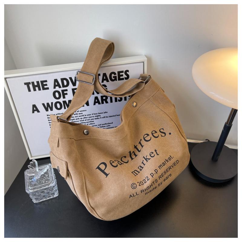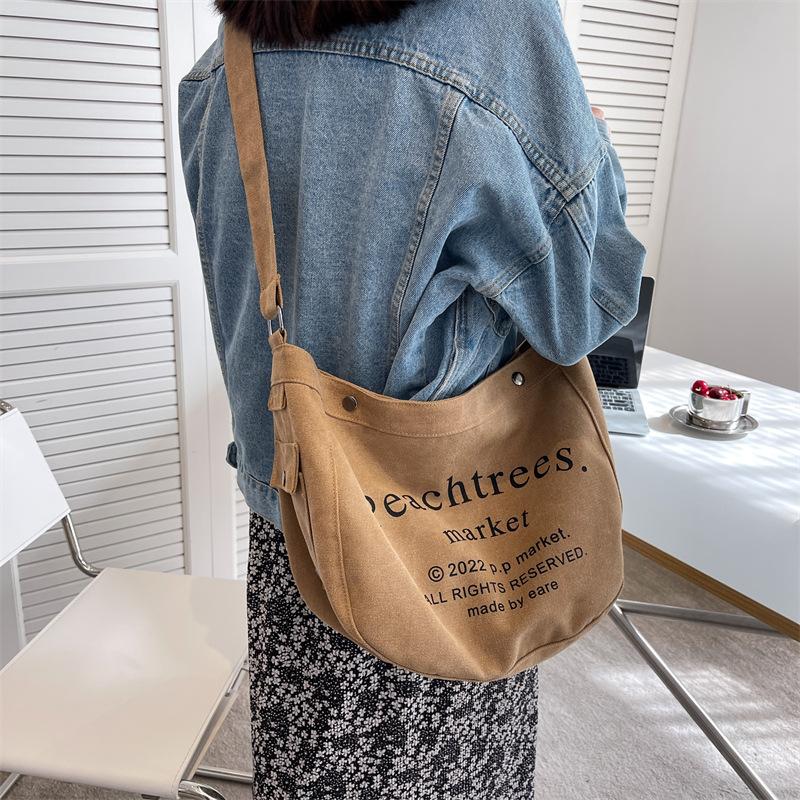 Холщовая сумка с буквенным принтом, женская универсальная большая сумка, студенческая сумка через плечо, большая вместительная сумка на одно плечо