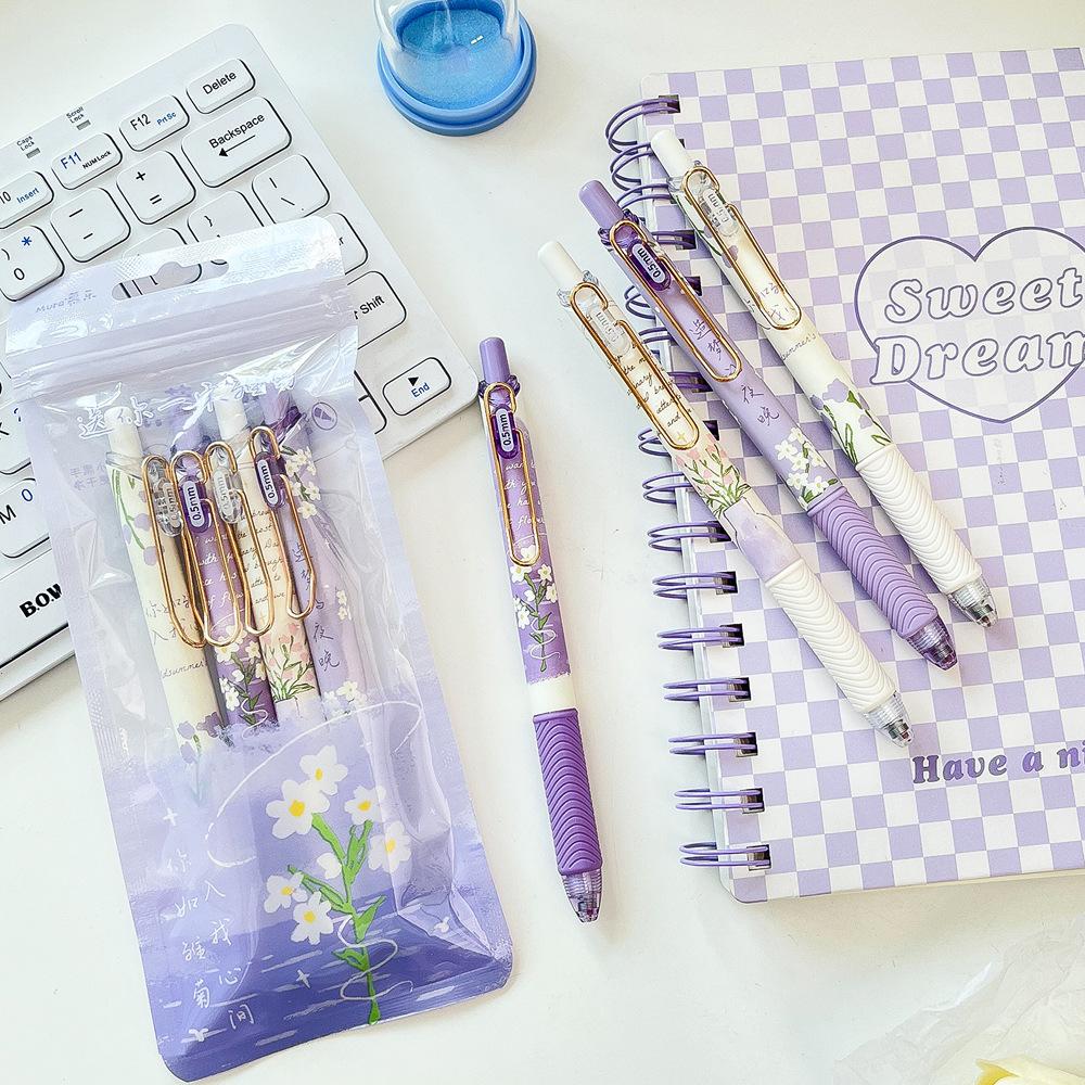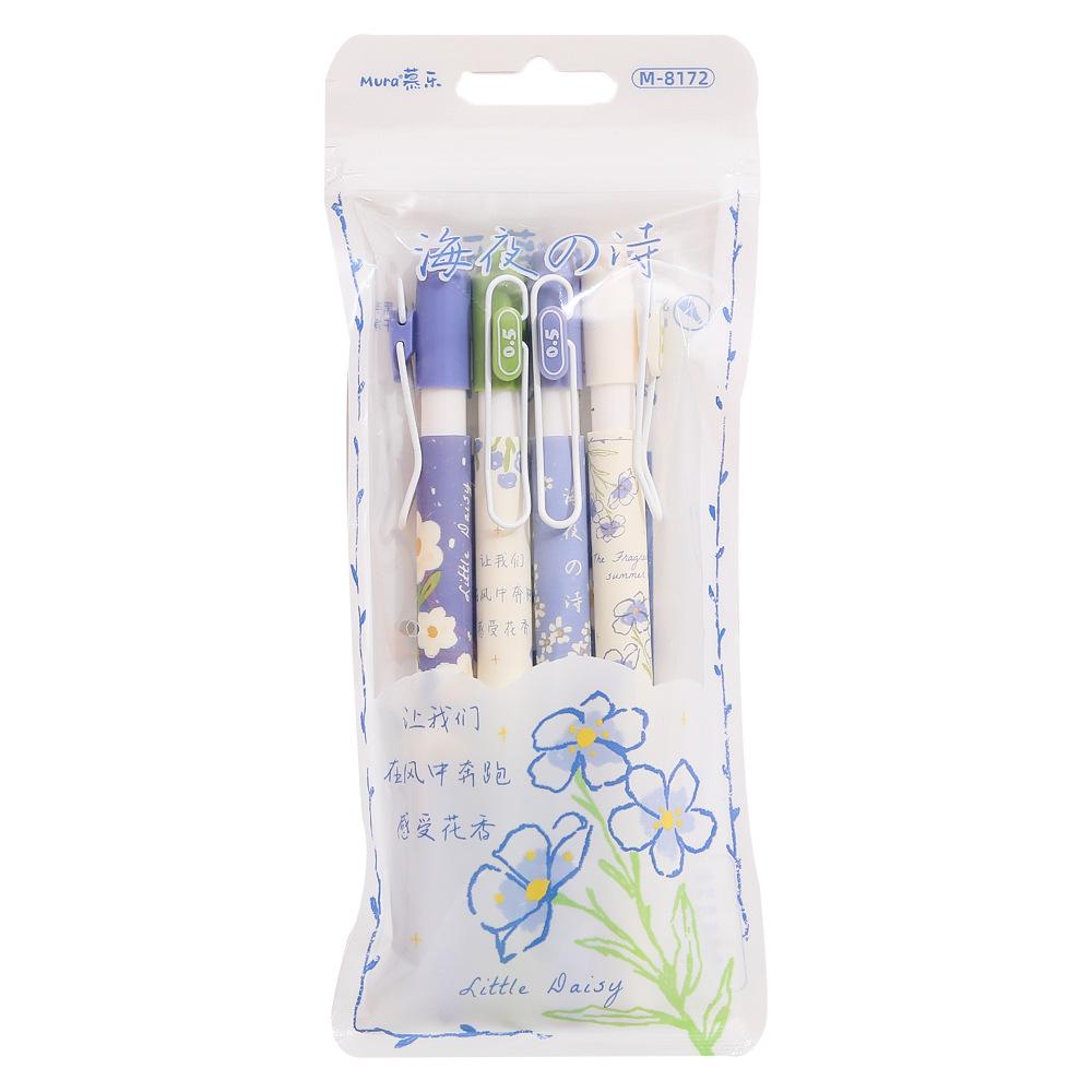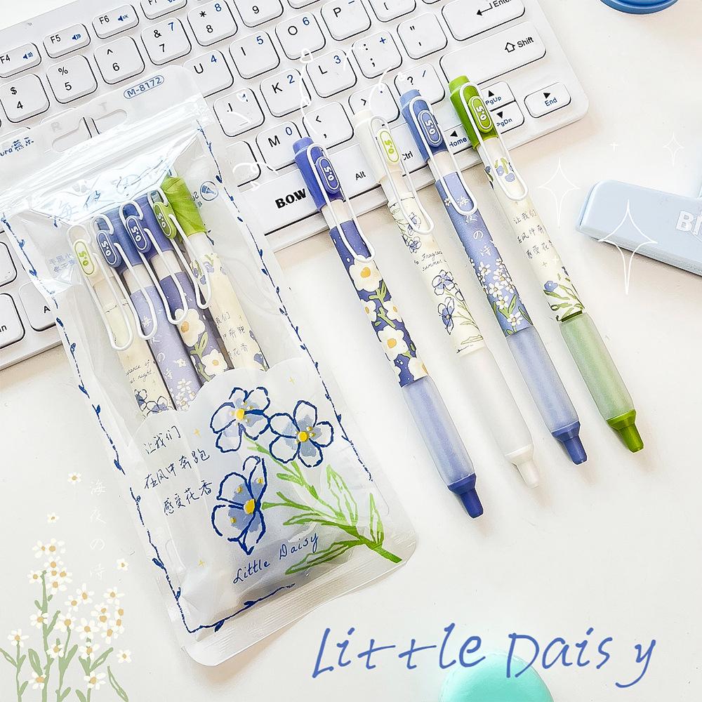 Набор гелевых ручек Little Daisy из 4 шт., шариковая ручка 0,5 мм со свежим цветком, быстросохнущие черные чернила для письма