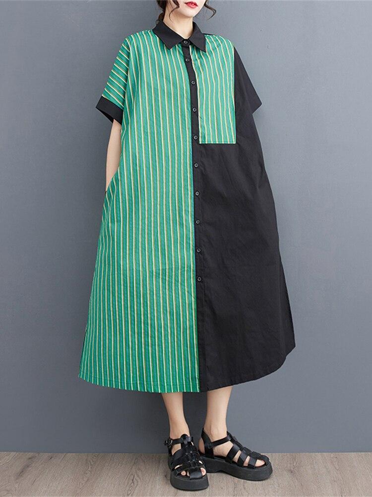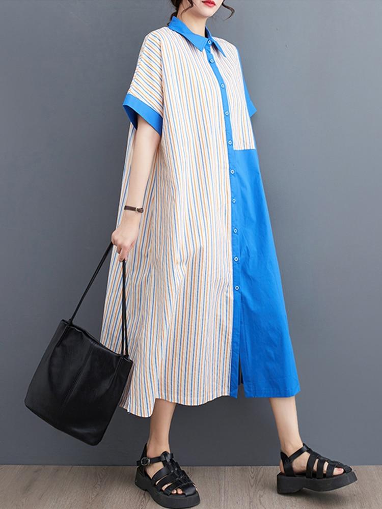 Xitao Полосатое платье, модное женское однобортное повседневное свободное платье с изображением богини WLD11528