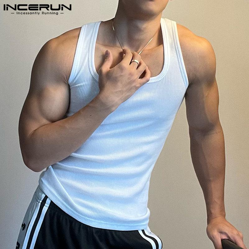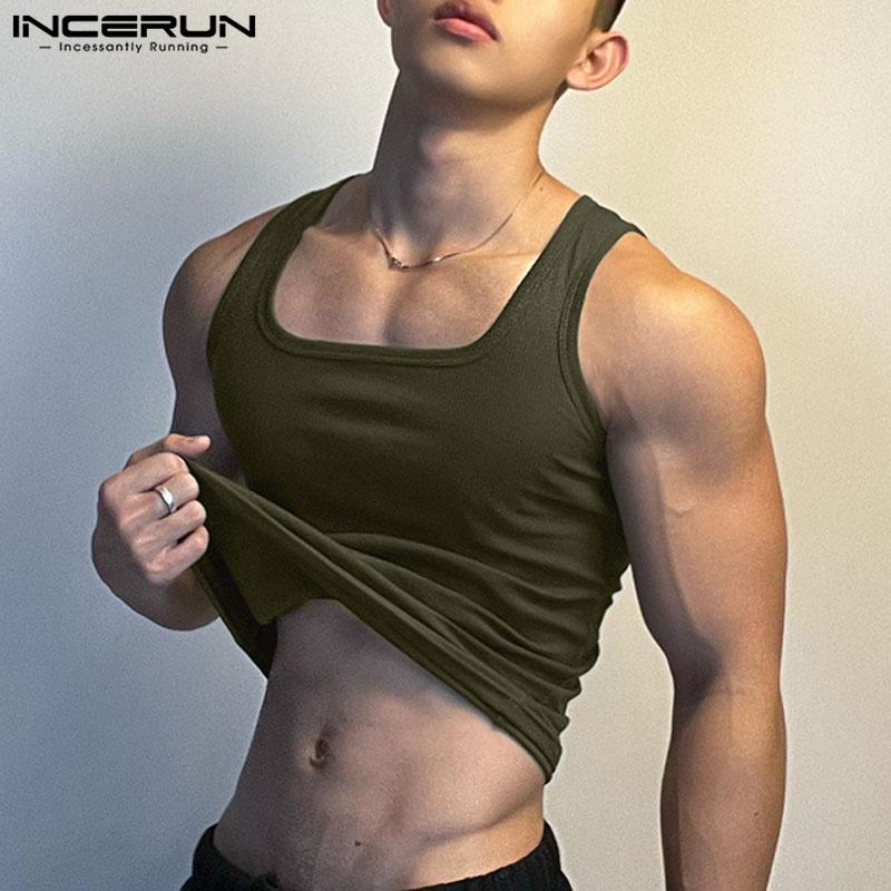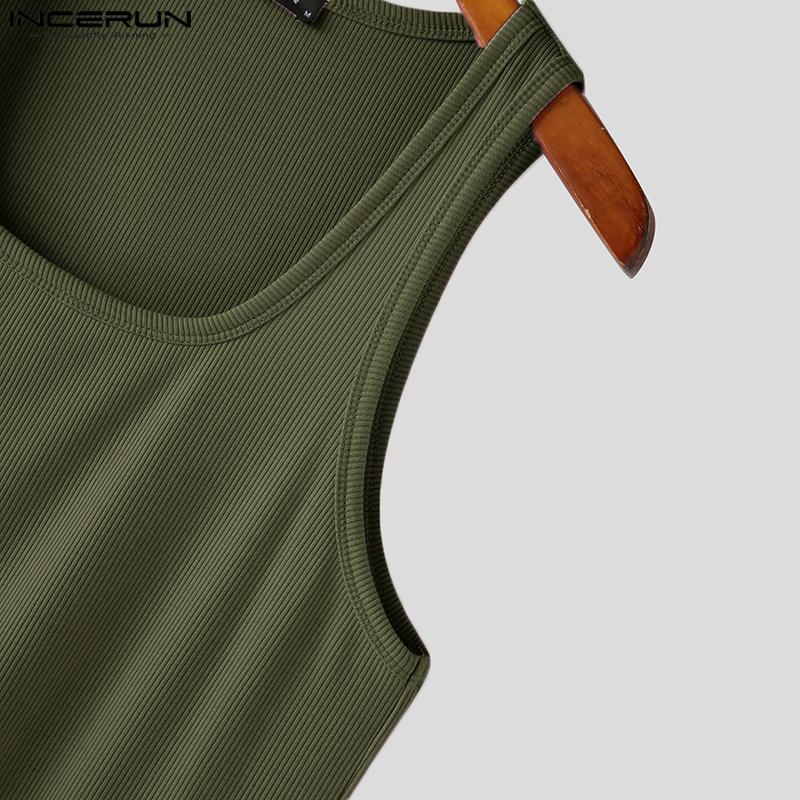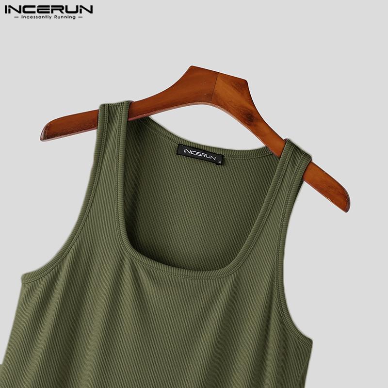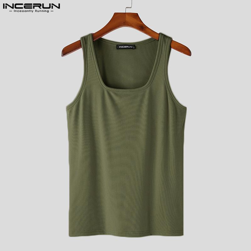 INCERUN Мужской жилет без рукавов с квадратным воротником, приталенная майка в тонкую полоску