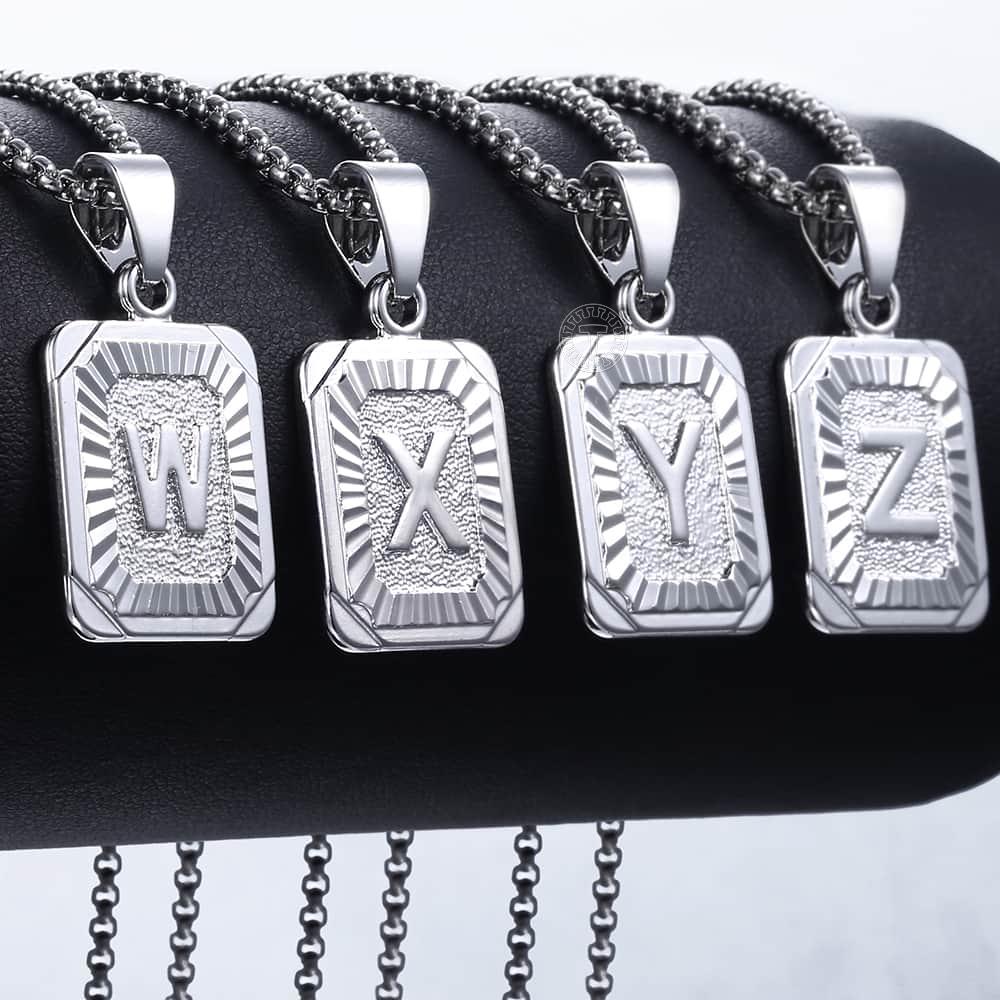 Ожерелья с подвесками серебряного цвета с буквами AZ, квадратное ожерелье с заглавными буквами из нержавеющей стали, ювелирные изделия унисекс с алфавитом — купить товар онлайн с бесплатной доставкой по всему миру!