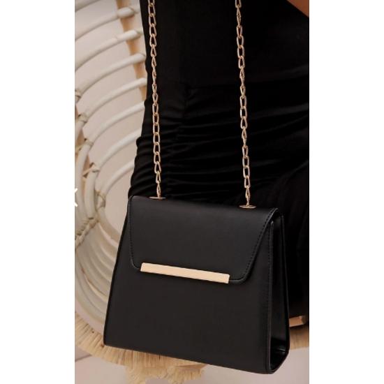 Женская черная сумка через плечо с цепочкой