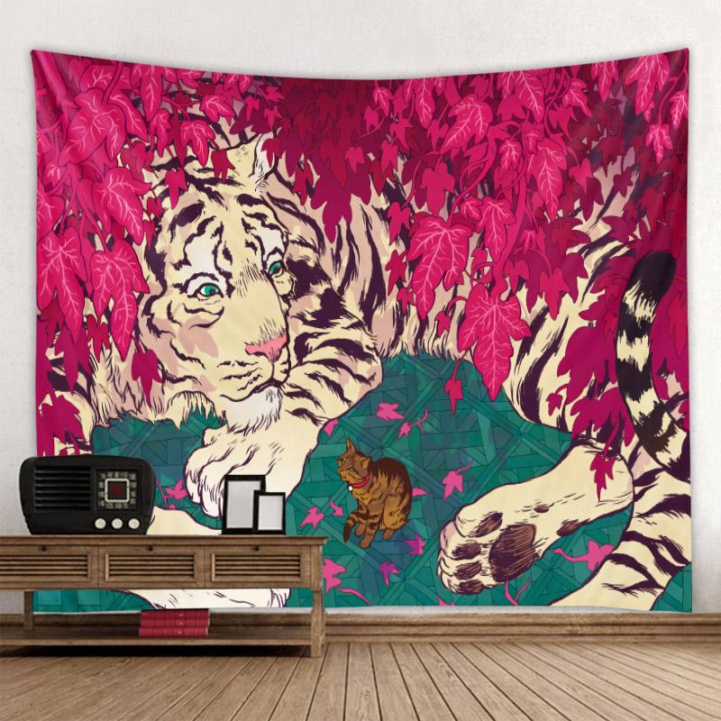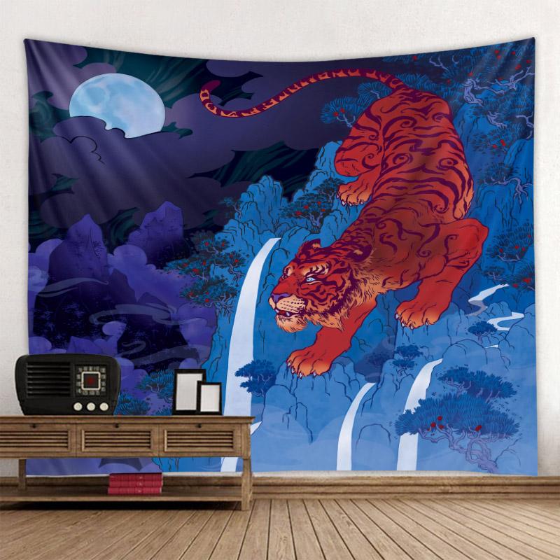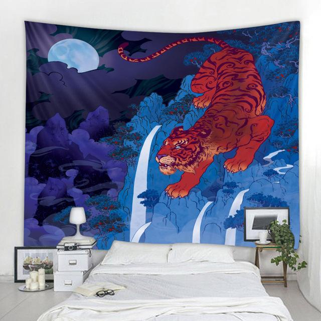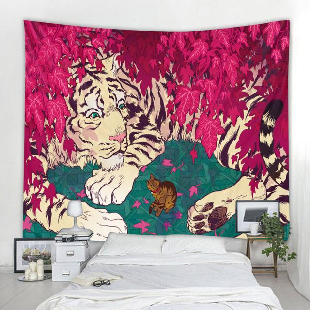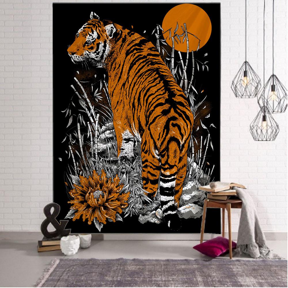 Джунгли Тигр иллюстрация ретро арт-деко гобелен в стиле бохо настенный хиппи колдовство психоделическое украшение дома