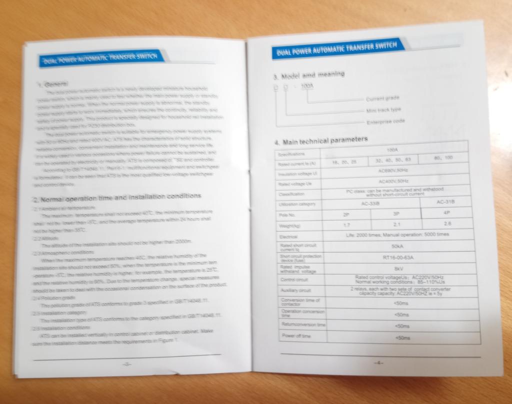 Автоматический резервный переключатель Резервный переключатель 125А 2П 50/60Гц