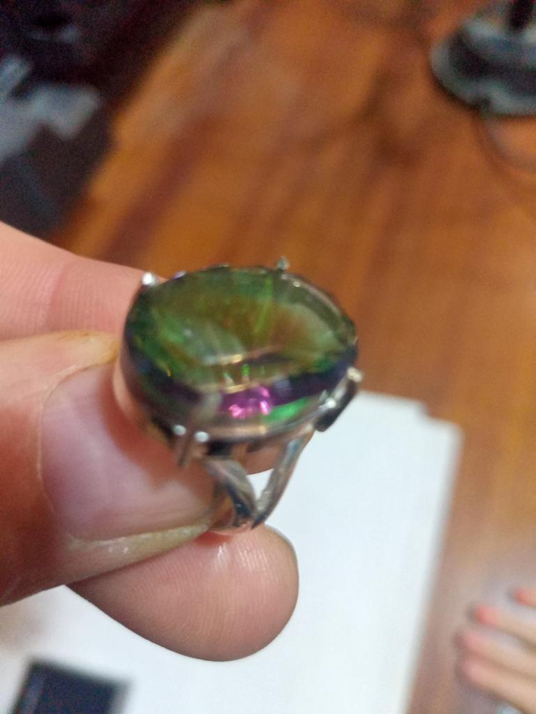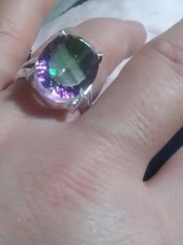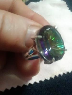 Спасибо, товар получен. Упакован в контейнер-сундучок и пакетик, размер соответствует, чуть маломерит,хорошо подстраховалвсь на 9,5, ношу 9, но так удобнее, снизу широкое кольцо, сидит удобно, но жутко царапают неотшлифованные лапки, после среза, так и прислали, придётся дорабатывать. Хотела снять звезду. Камень огромный, даже и не думала,что такой будет, ещё при выборе сомневалась,что немного будет великоват, в реале так и совсем гигант! Вот и любуюсь теперь, глазу есть где отдохнуть! Красота больше выражается при искусственном освещении, краски сочные, густые, с преобладанием зелёного, а при дневном бледные, не очень искристые, зато на солнышке- другое дело. В подлинности камня есть сомнения, но я поклонница во всех его видах. Носить буду, спасибо, могу рекомендовать, смотрите фото, хотя качество их неважное, пардон за камеру.