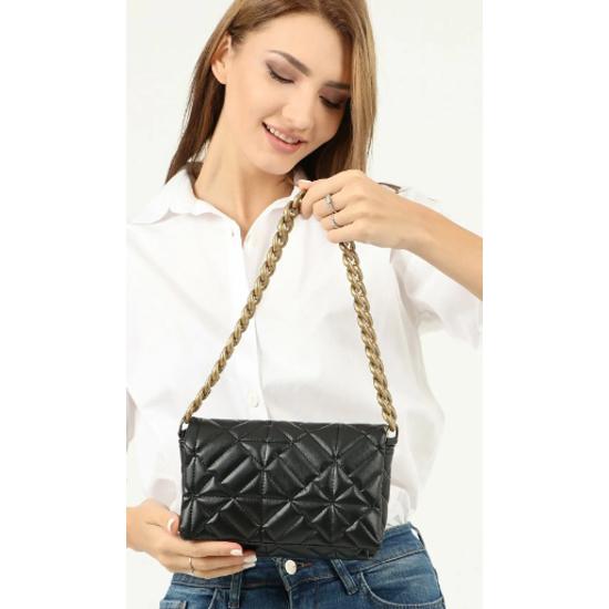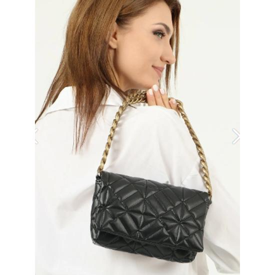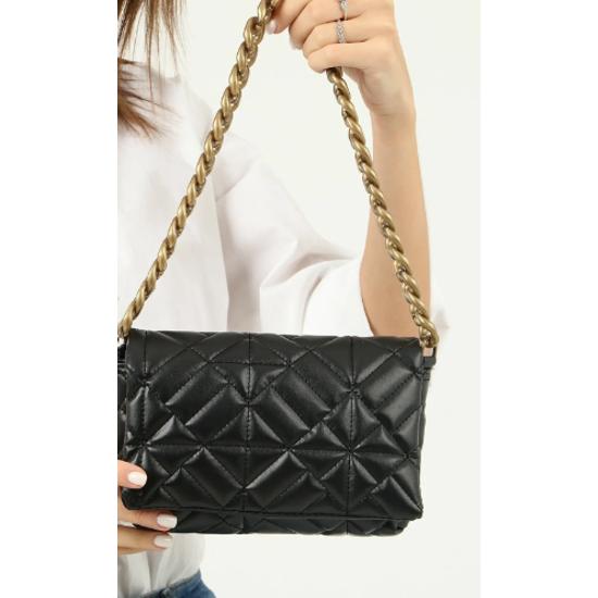 Женская черная стеганая сумка через плечо с цепочкой