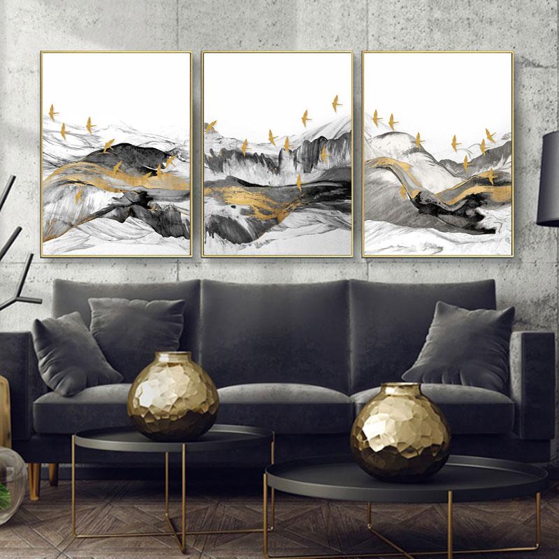 Скандинавский абстрактный художественный пейзаж, серый, золотой, комбинированная картина, настенная художественная картина, холст, печать плакатов для украшения гостиной — купить товар онлайн с бесплатной доставкой по всему миру!
