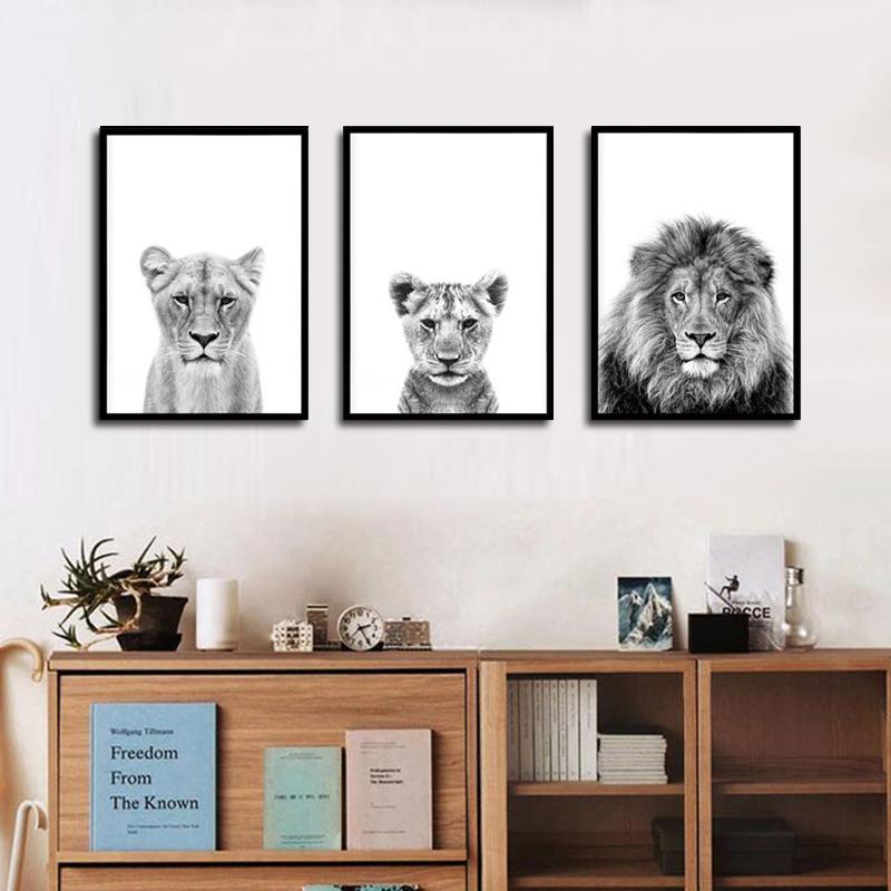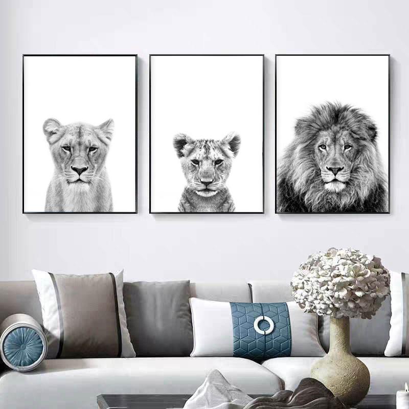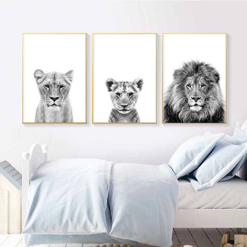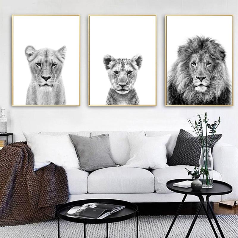 Картина на холсте с животными Лев, львица и львенок, холст, постеры и принты, настенные панно для украшения гостиной, домашний декор
