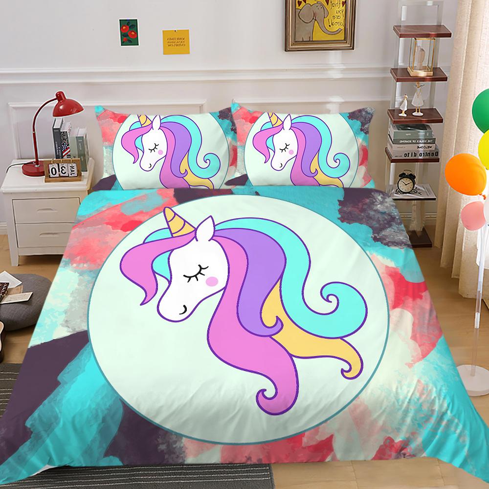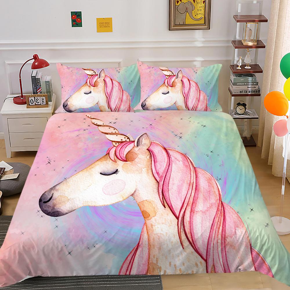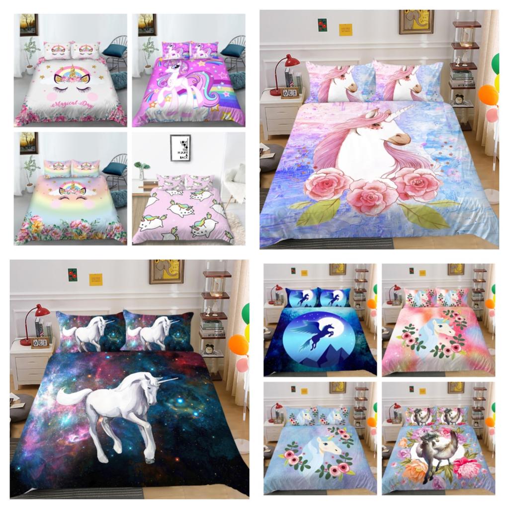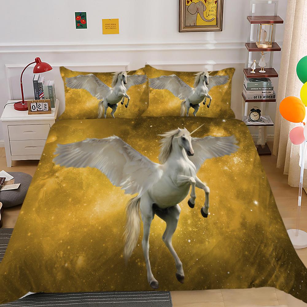 2023 Новый стиль, 2/3 шт., комплект высококачественных пододеяльников с 3D принтом единорога, комплекты пододеяльников из высококачественного полиэфира