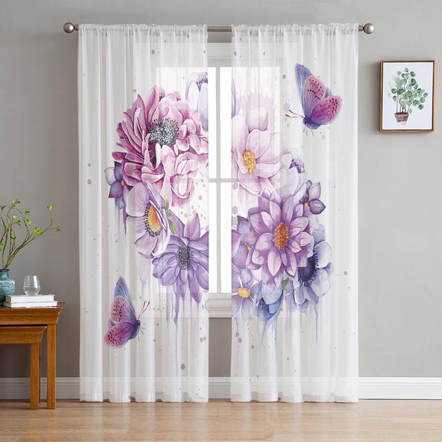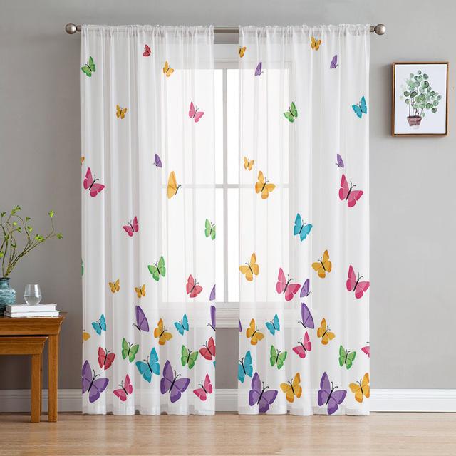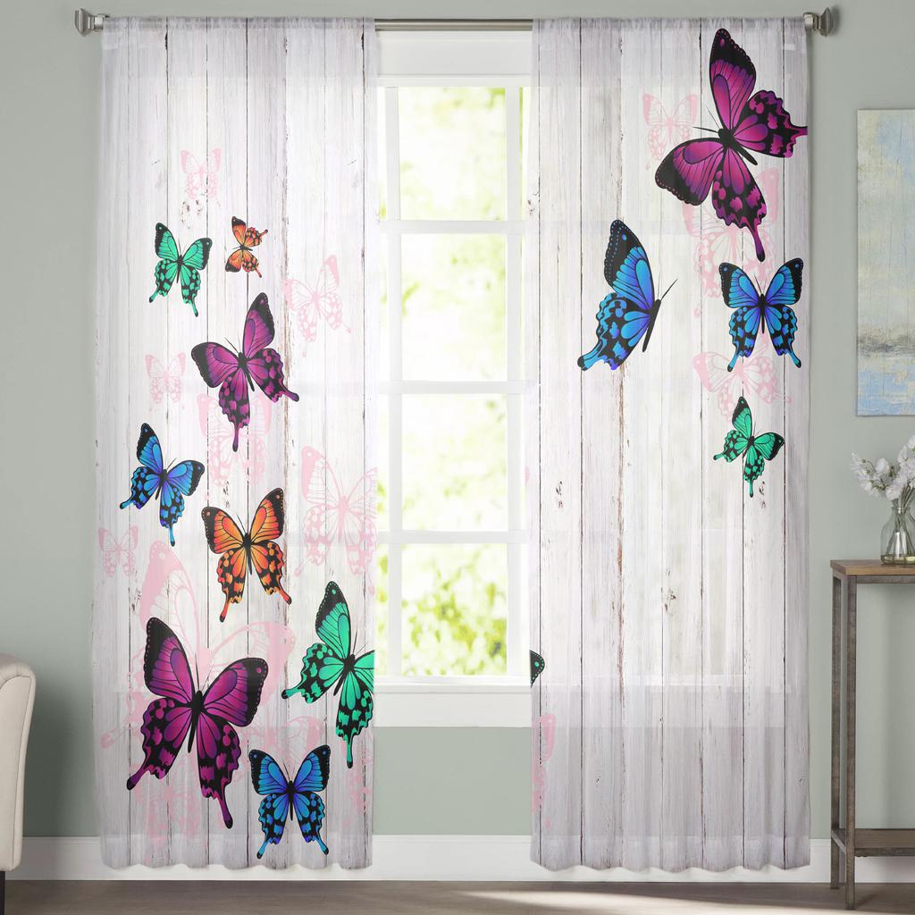 Древесина Ретро Красочные шифоновые прозрачные шторы с бабочками для гостиной, спальни, украшения дома, оконная вуаль, тюлевая занавеска