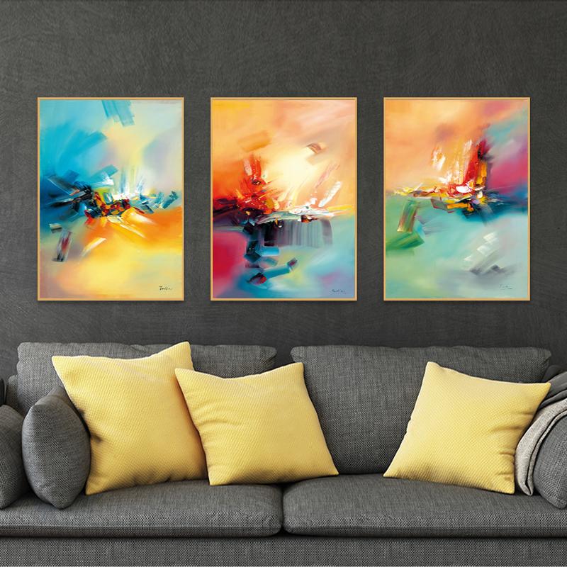 Красочные абстрактные настенные рисунки Желтый Розовый Синий Мечта Лист Картина Маслом Холст Настенные Панно для Декора Комнаты Акварельные Художественные Работы
