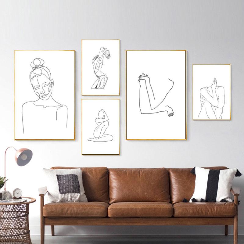 Домашний декор, принты, живопись, скандинавские черно-белые линии, женские фотографии, настенное искусство, модульный холст, постер, современный прикроватный фон