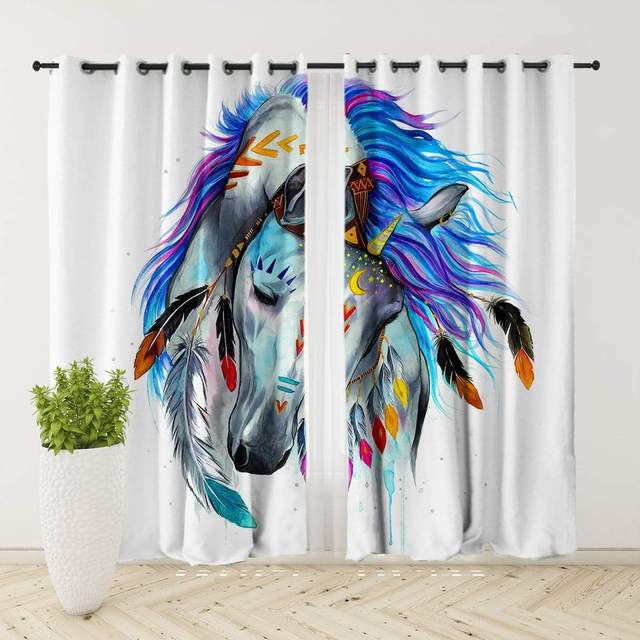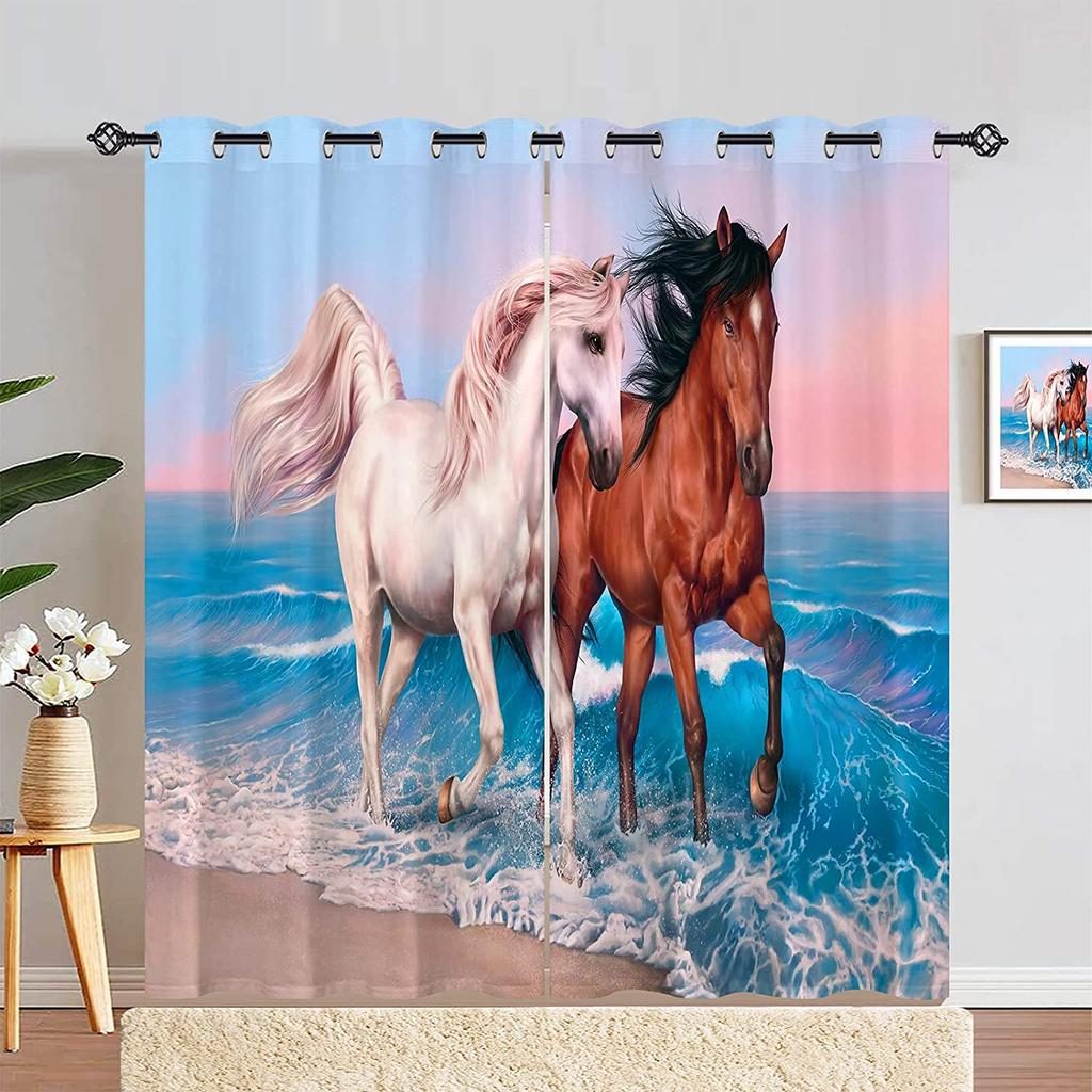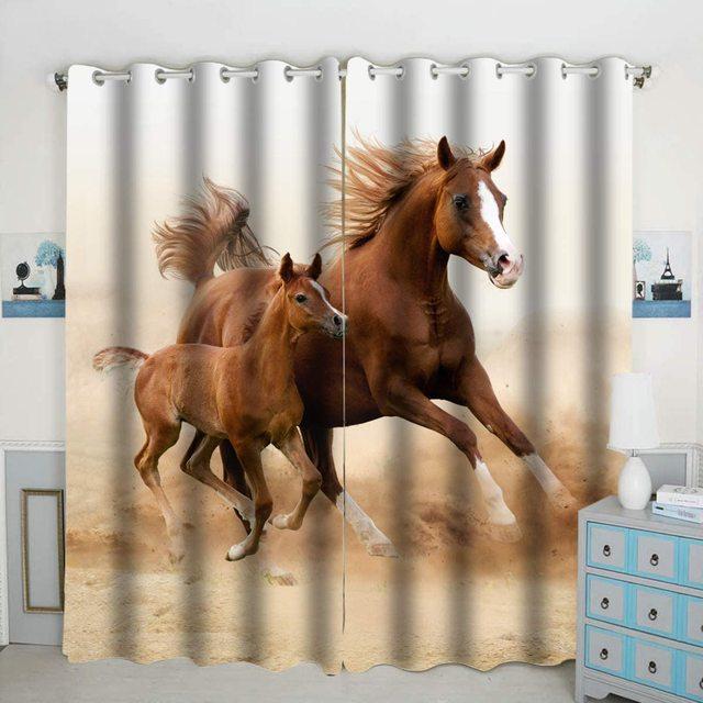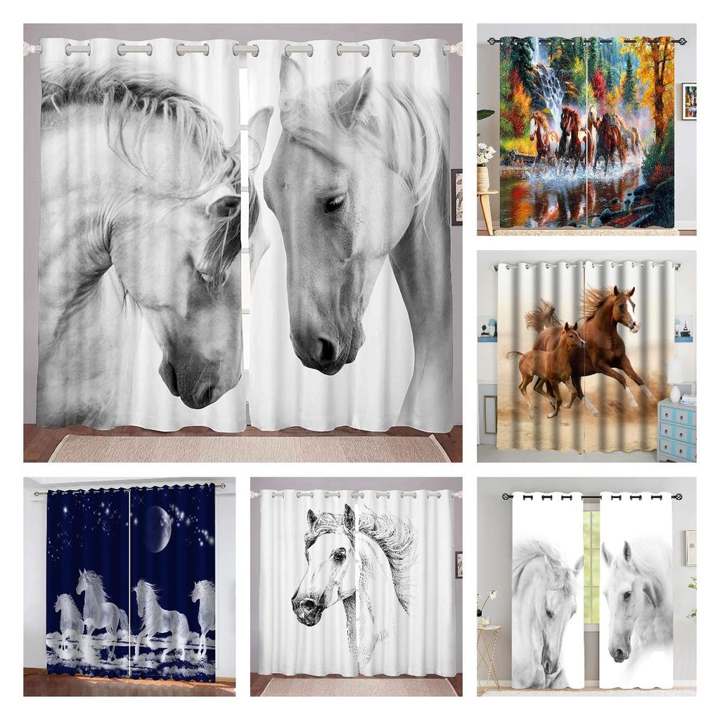 Плотные шторы с лошадью для спальни, шторы с изображением животных в гостиной, занавески для окон, домашний декор, высокая затененность (70 %-90 %)2 панели