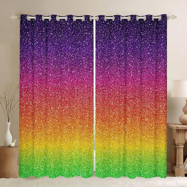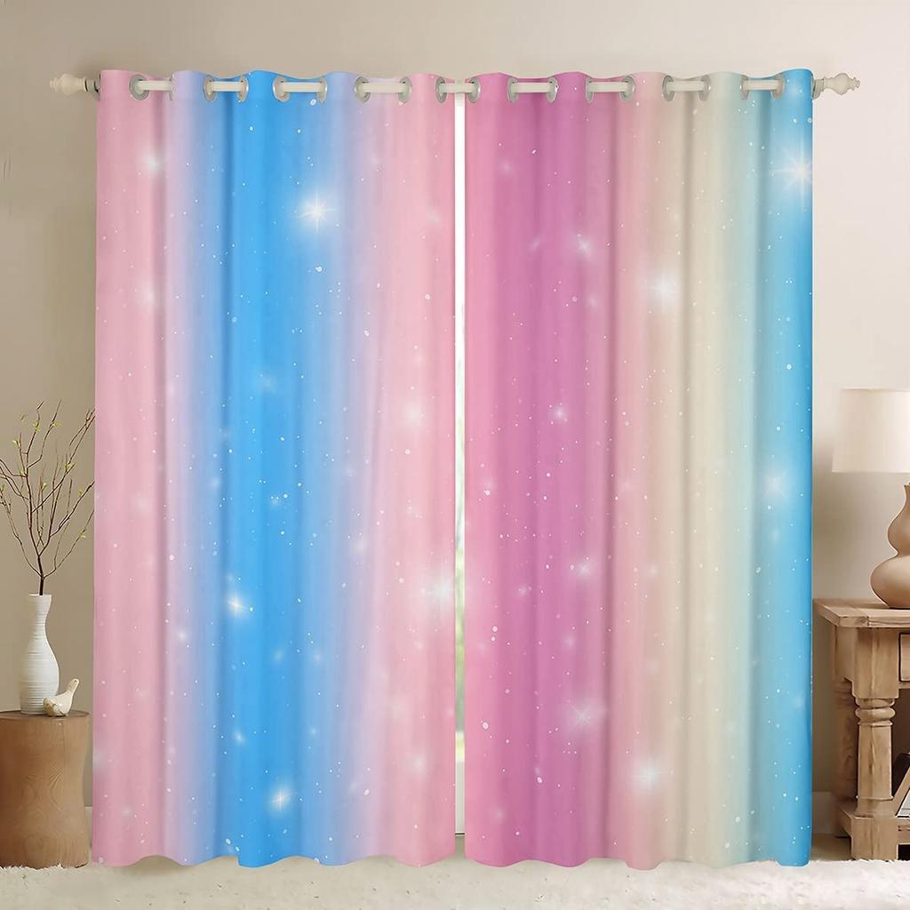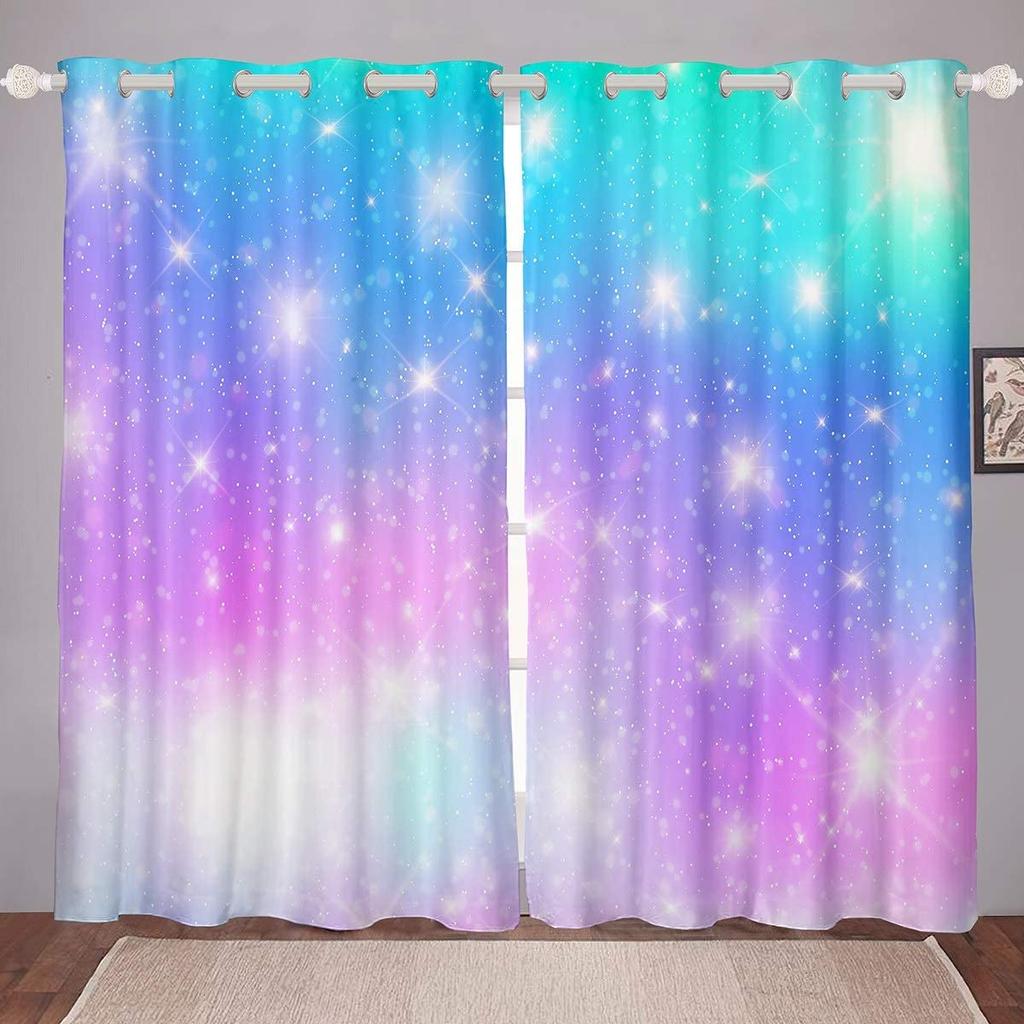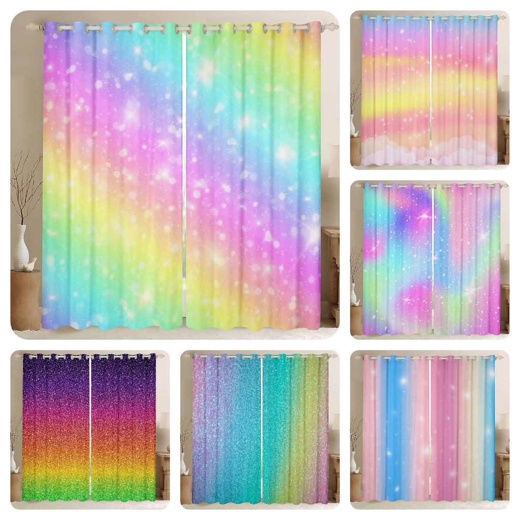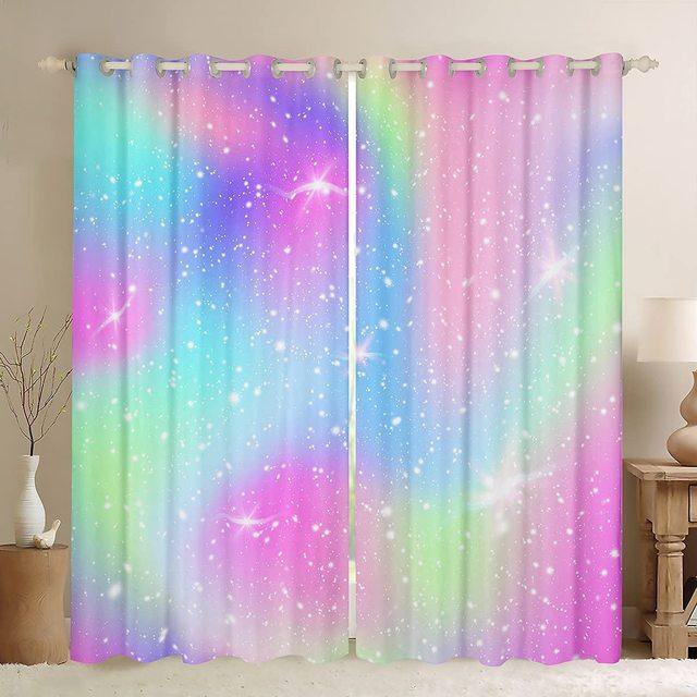 Радужные шторы с принтом тай-дай, плотные шторы для девочек, спальня, мерцающие звезды, гостиная, домашний декор, двустворчатые открытые слева и справа