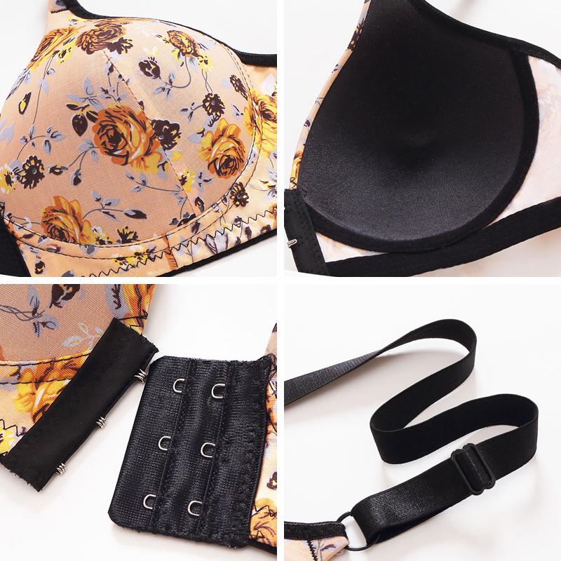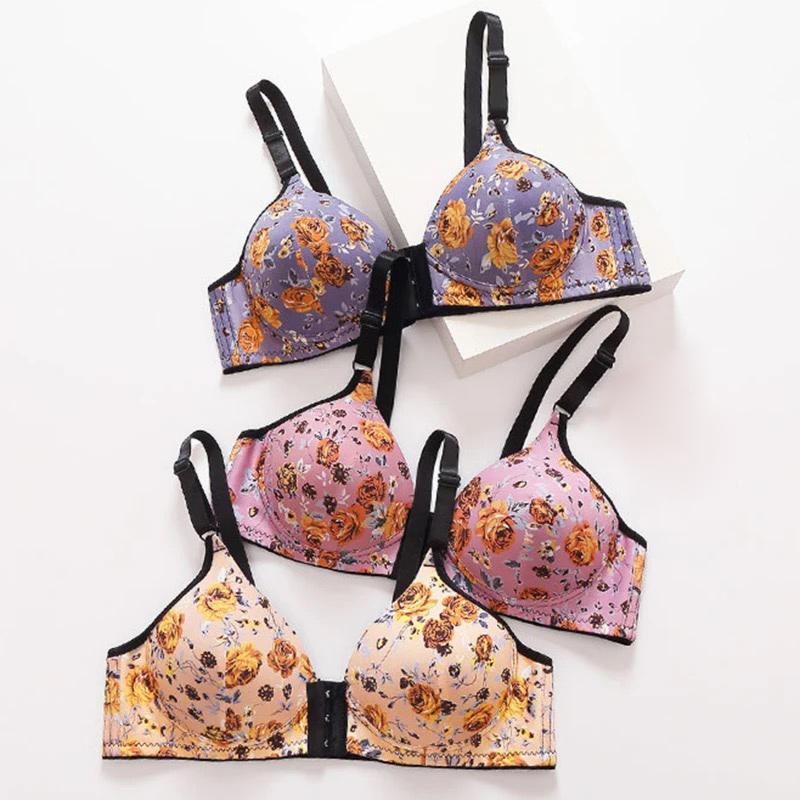 Сексуальный бюстгальтер с застежкой спереди, пуш-ап, бюстгальтер без косточек с цветочным принтом, удобное беспроводное женское белье, чашка BC