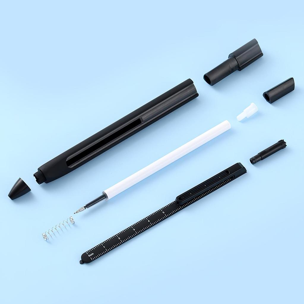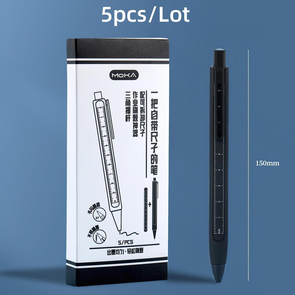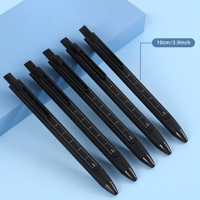 Набор ручек-линеек, 5 шт., автономная линейка 10 см, шариковая ручка 0,5 мм, черный цвет, гелевые чернила