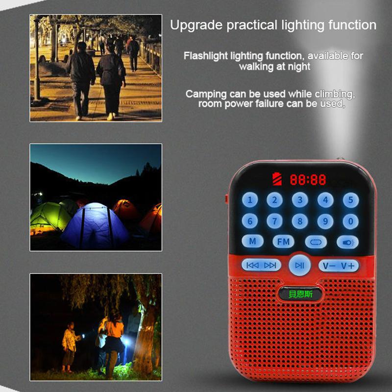 Портативный мини-радио, FM-радиоприемник, беспроводной Bluetooth-динамик со светящейся кнопкой, фонарик, поддержка USB-плееров TF-карт