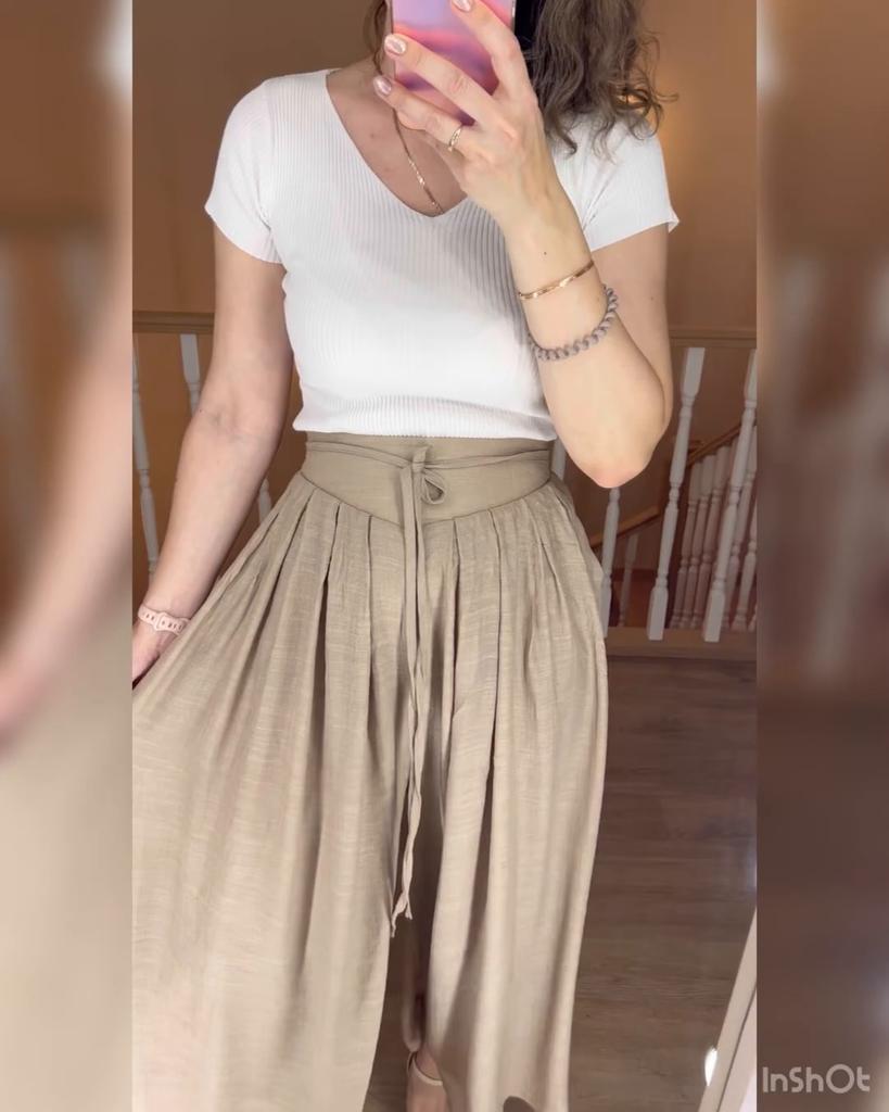 Летние юбка-брюки!🔥 Девочки, это моя находка!) Брала наугад, так как отзывов еще не было. У них очень выигрышный фасон. Талия высокая, есть кокетка. Сзади на резинке. Штанины расклешаются как юбка. Смотрятся пышненько, красиво. Талия хорошо подчеркивается. Стройнят. Есть тоненький поясок. Ткань хорошая. В описании написано- хлопок. Возможно так и есть, а может смесовая. В любом случае очень легкая. Гладится легко, но относится к тем тканям, которые и в чуть мятом состоянии смотрятся нормально. Брючки не просвечивают, так как внутри есть подклад из аналогичной ткани. Пошив безукоризненный. Мои параметры 90-70-98, рост 169. Размер Л сел хорошо. Резинка в талии с запасом, но сама по себе туговатая, думаю растянется. Мне размер больше не нужен. По ссылке есть еще и бледно розовый цвет. Советую. Для лета просто супер. С вас лайк❤️