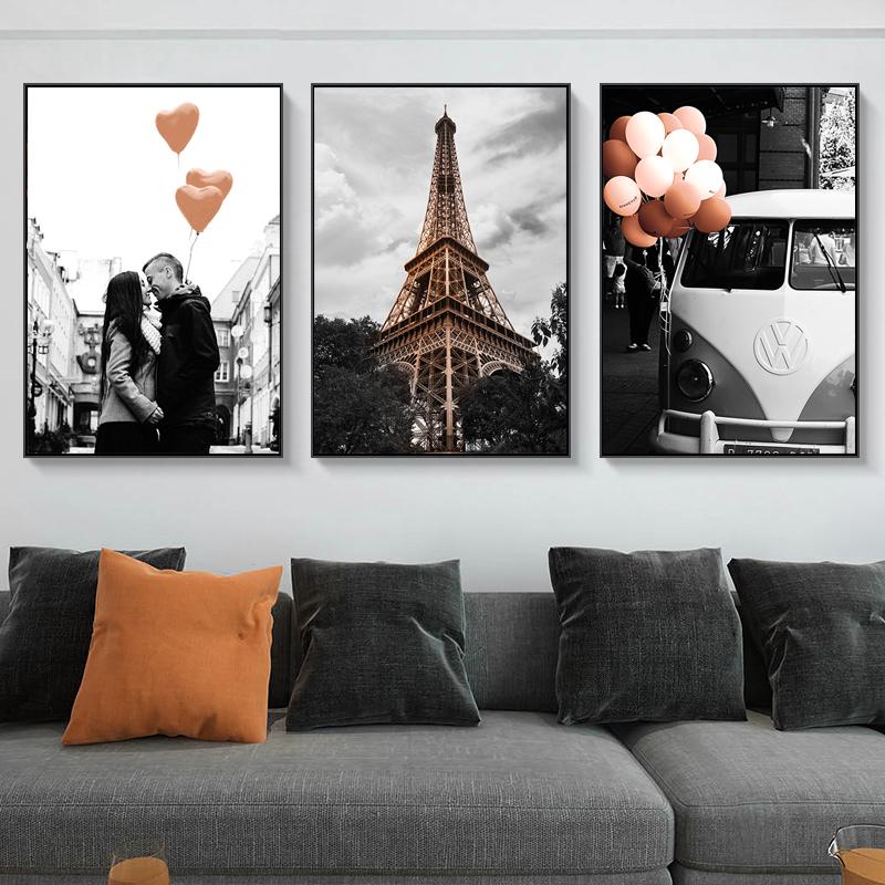 Парижская башня колесо обозрения трамвайная дорога уличная настенная живопись на холсте плакаты на скандинавскую тему и принты настенные панно для декора гостиной