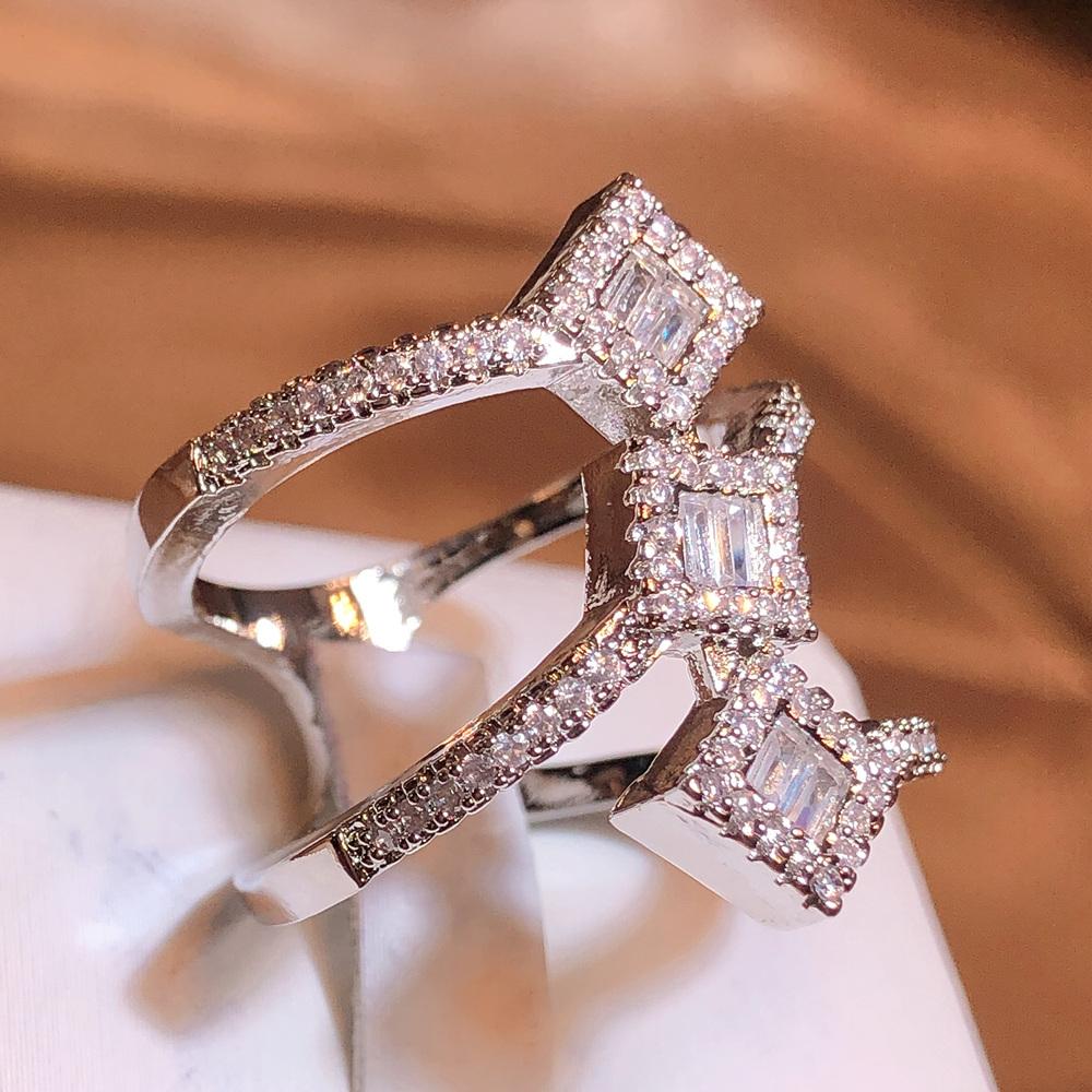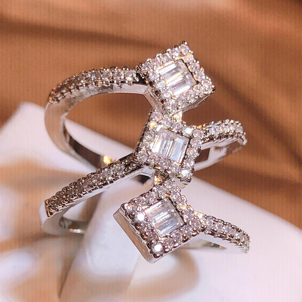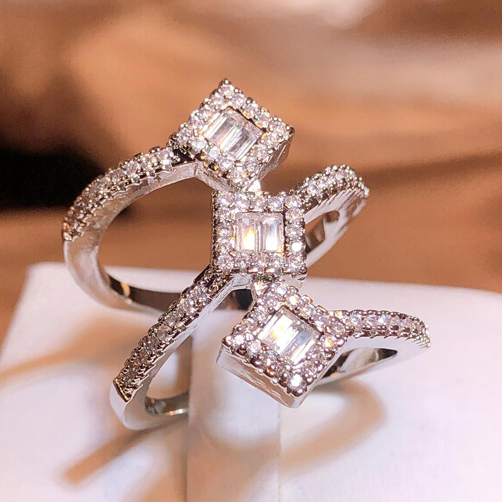 Классическое кольцо с геометрическим цирконием для женщин, модные вечерние украшения, ювелирные изделия для помолвки, 925 посеребренное кольцо, подарок на годовщину