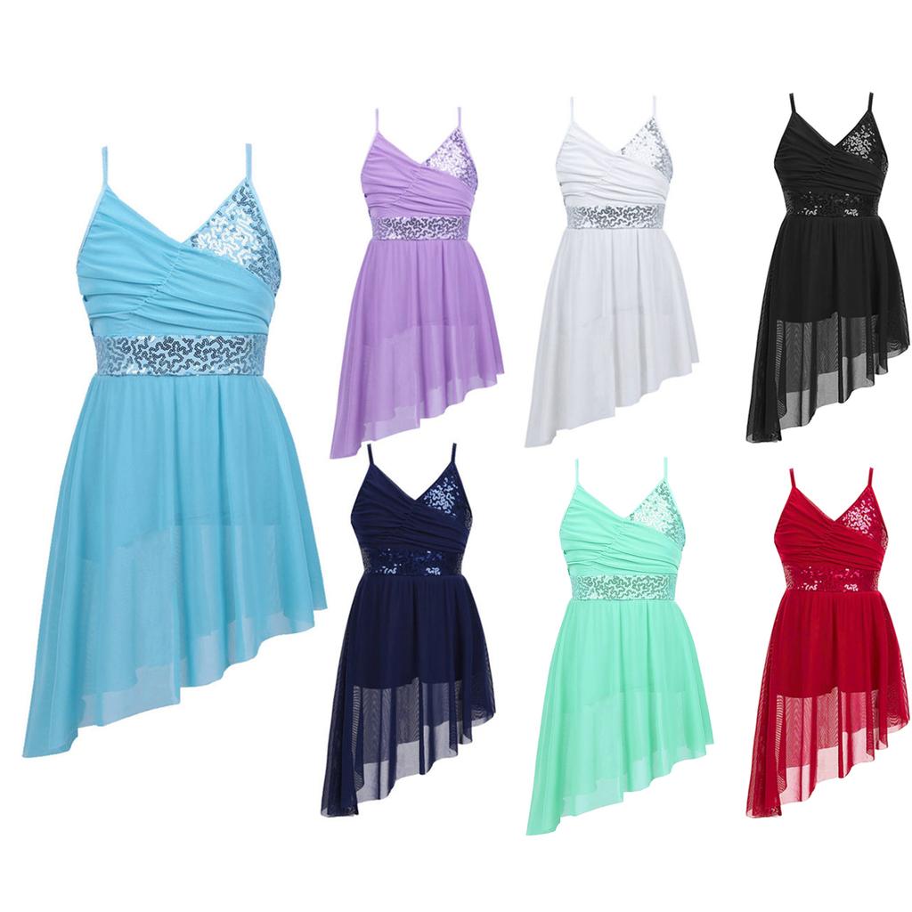 Детское платье для лирических танцев с v-образным вырезом и блестками для девочек, камзол без рукавов, балетный костюм для латинских выступлений