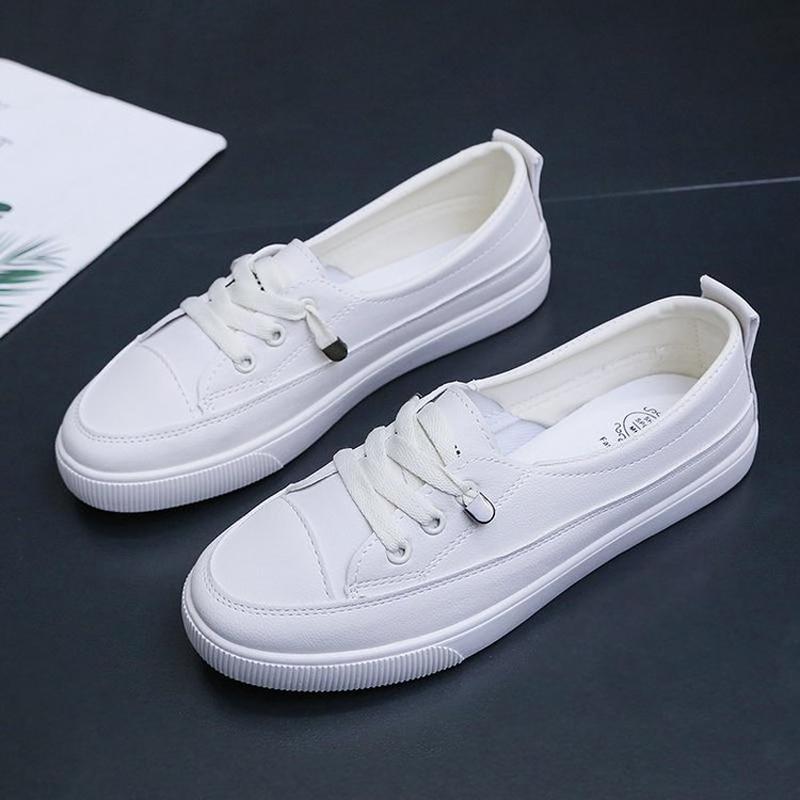 Кроссовки на низкой платформе. Женская обувь. Женские прогулочные кроссовки из искусственной кожи. Лоферы. Белая повседневная обувь без шнуровки на плоской подошве.
