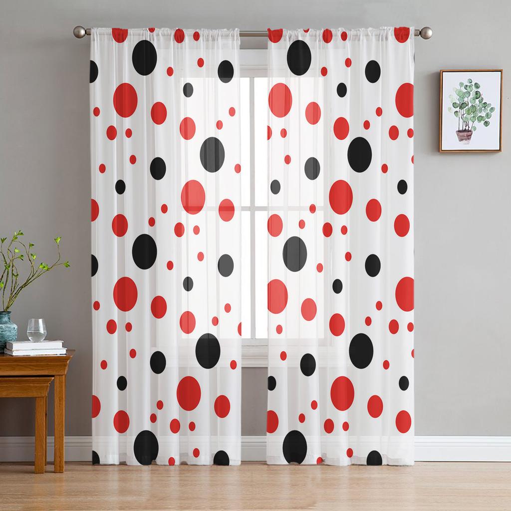 Красные и черные точки, белые прозрачные оконные шторы для спальни, современная шифоновая драпировка, тюль, подзоры, гостиная, кухня, вуаль, занавеска