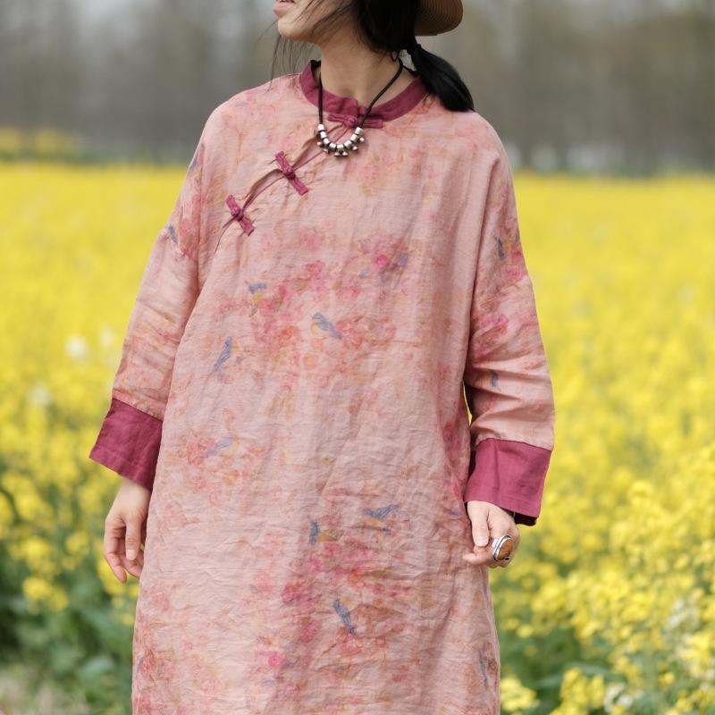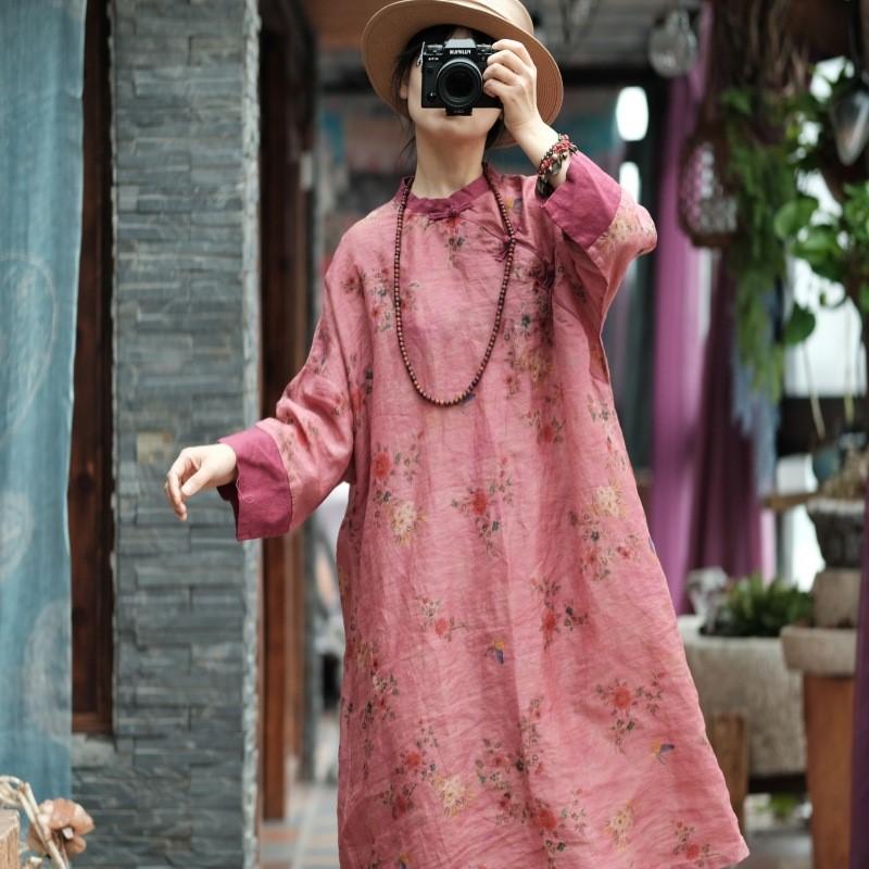 Johnature Весенне-летнее женское платье с воротником и принтом в китайском стиле, винтажное платье с цветными блоками, платья с длинными рукавами