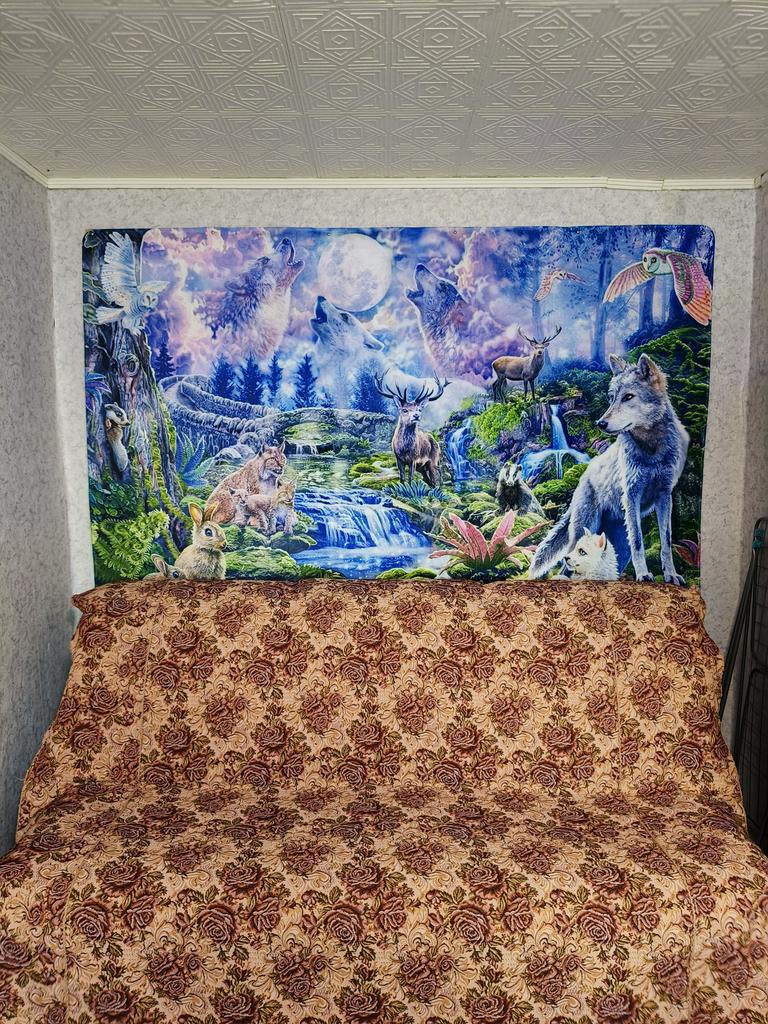 Отличный коврик! Повесила на стену. Мягкий,очень лёгкий. Гладится обычным утюгом. Можете смело заказывать. Конечно цена чуть завышена...